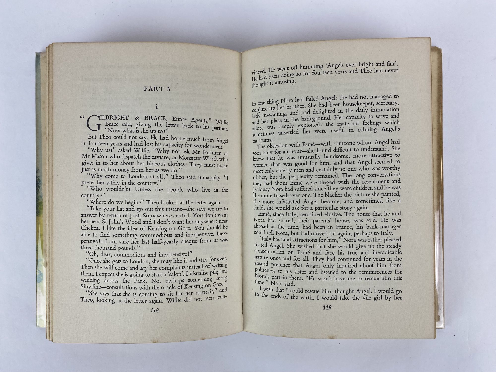 London: Peter Davies, 1957. First Edition, First Printing. Hardcover. Octavo, 252 pages. In Good plus condition with Good plus dust jacket. Green, purple, and blue pictorial spine with black text. Dust jacket is protected by mylar covering and has chipping to corners, wrinkling to head edge of spine, foxing to covers and inside of dust jacket, and mild edge and shelf wear. Price clipped. Boards have discoloration to both covers. Textblock has foxing to pages and to edges, heavy toning to endpapers where uncovered by dust jacket, and owner inscription on front endpaper. Shelved Case 7. 1381509. Shelved Dupont Bookstore.