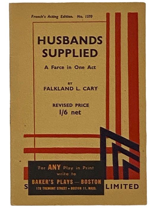 London: Samuel French Limited, 1939. Stapled Binding. Near Fine. 5x0x8. Ink stamp on title page. 1939 Stapled Binding. 31 pp. Five women are at the marriage bureau "Husbands Supplied" all looking for a husband. A dashing young man comes in and immediately the five women, the bureau's owner and her secretary make a play for him. But it turns out that he is already married to one of the seven women.