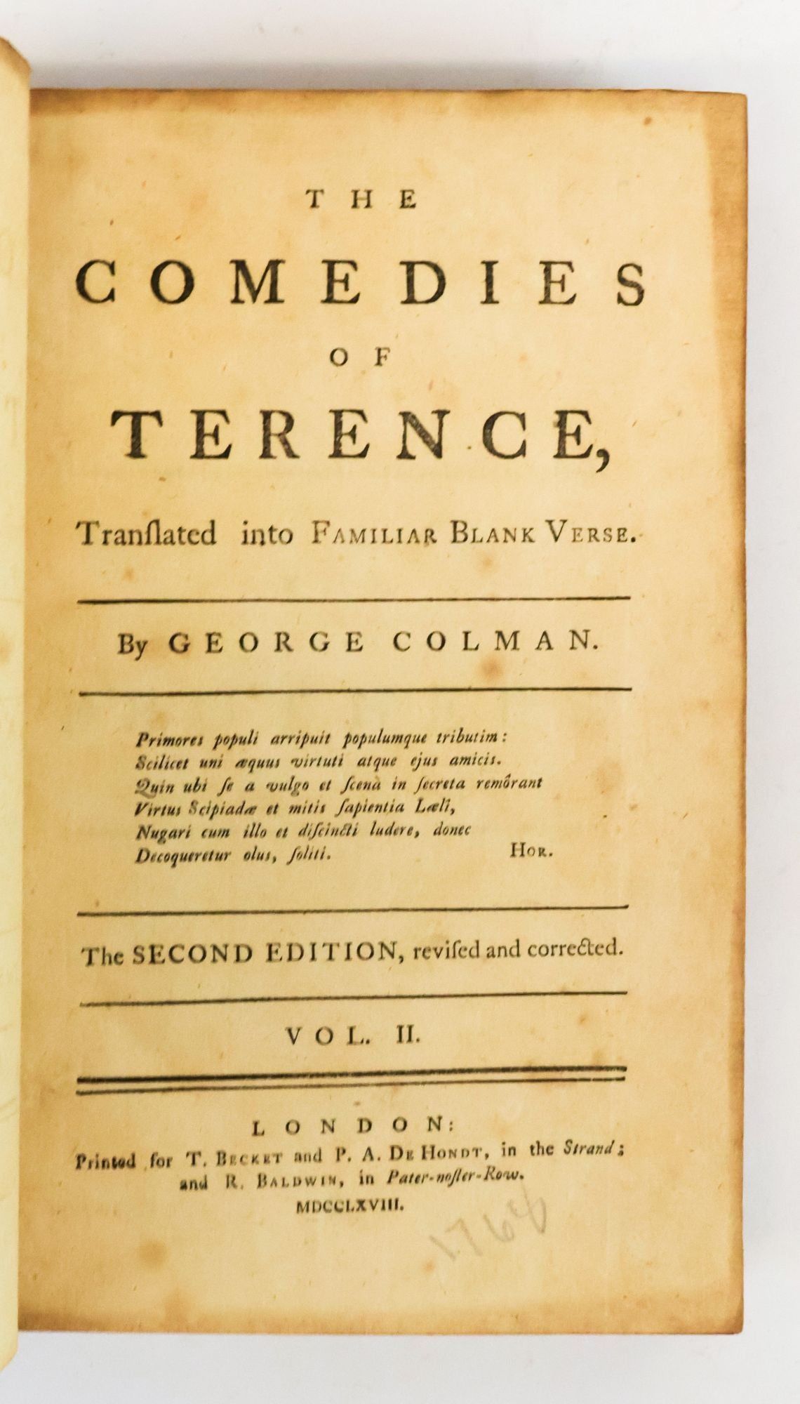 THE COMEDIES OF TERENCE, TRANSLATED INTO FAMILIAR BLANK VERSE [Two Volumes]