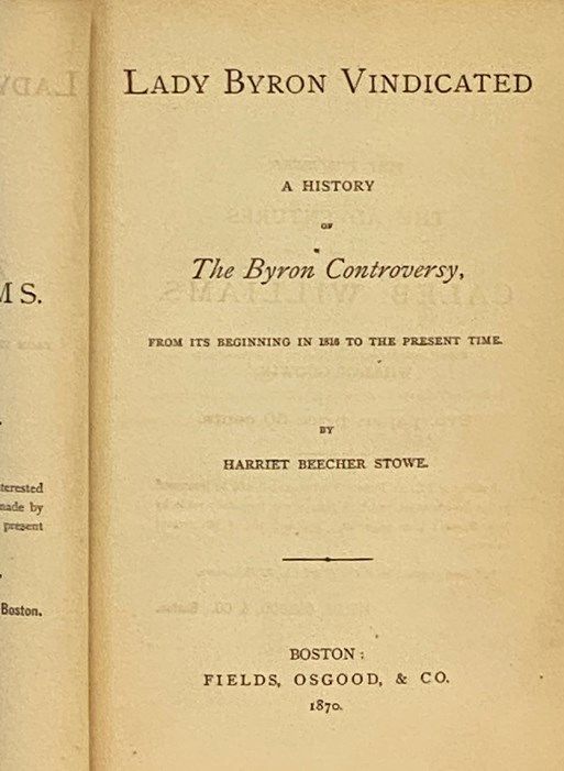 Boston: Fields, Osgood, and Co, 1870. First Edition. Hard Cover. Good/No Jacket. 0x0x0. First edition, second state (BAL 19456). Boards a bit rubbed, front hinge just beginning to weaken. 1870 Hard Cover. 482 pp. A biographical account of Lady Byron by the American author best known for Uncle Tom's Cabin. "Anne Isabella Noel Byron, 11th Baroness Wentworth and Baroness Byron (née Milbanke; 17 May 1792 – 16 May 1860), nicknamed Annabella and commonly known as Lady Byron, was an English mathematician and the wife of poet George Gordon Byron, more commonly known as Lord Byron. A highly educated and strictly religious woman, she seemed an unlikely match for the amoral and agnostic poet, and their marriage soon ended in acrimony. Lady Byron's reminiscences, published after her death by Harriet Beecher Stowe, revealed her fears about an alleged incest Lord Byron had with his half-sister. The scandal about Lady Byron's suspicions accelerated Byron's intentions to leave England and return to the Mediterranean where he had lived in 1810. Their daughter Ada worked as a mathematician with Charles Babbage, the pioneer of computer science. Lady Byron had felt that an education in mathematics and logic would counteract any possible inherited tendency towards Lord Byron's perceived insanity and romantic excess.