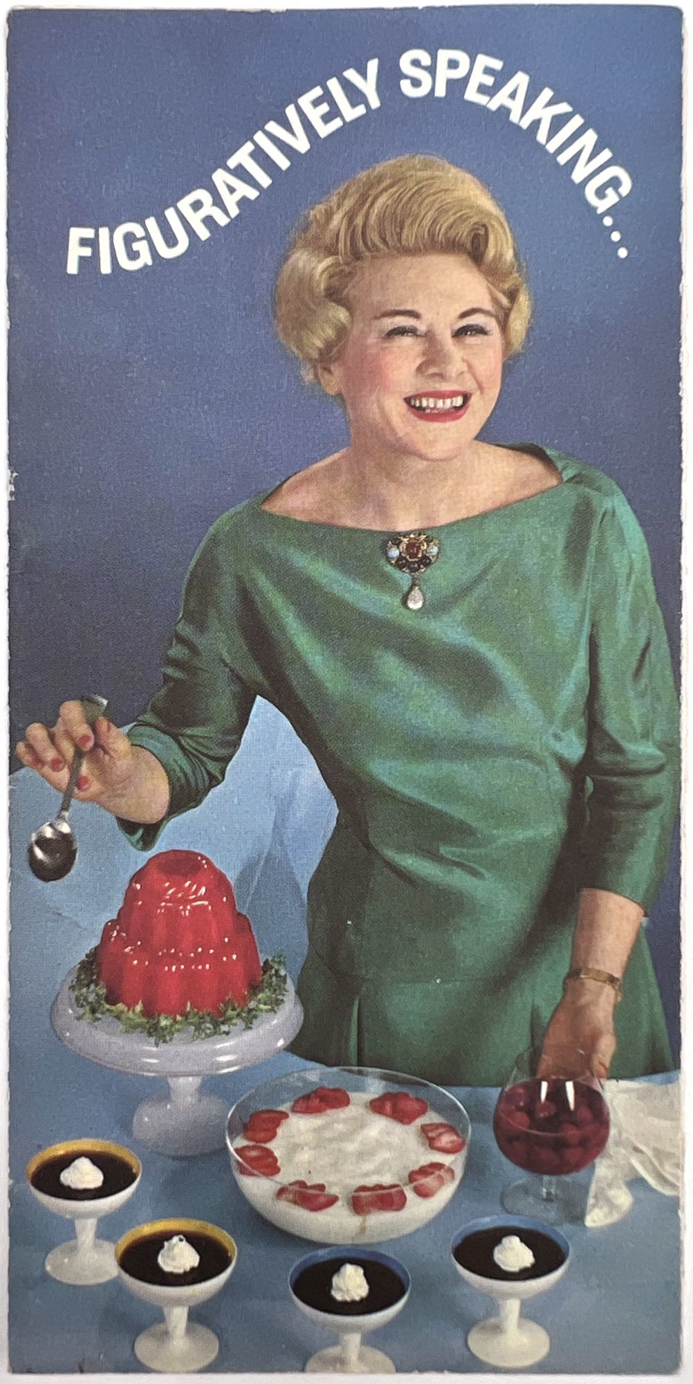 "Figuratively Speaking..." Johnstown: Knox Gelatine, Inc., c.1963. Folding pamphlet, illus., measuring 6" by 3" folded. Exercises, recipes, advertises Knox Gelatine.