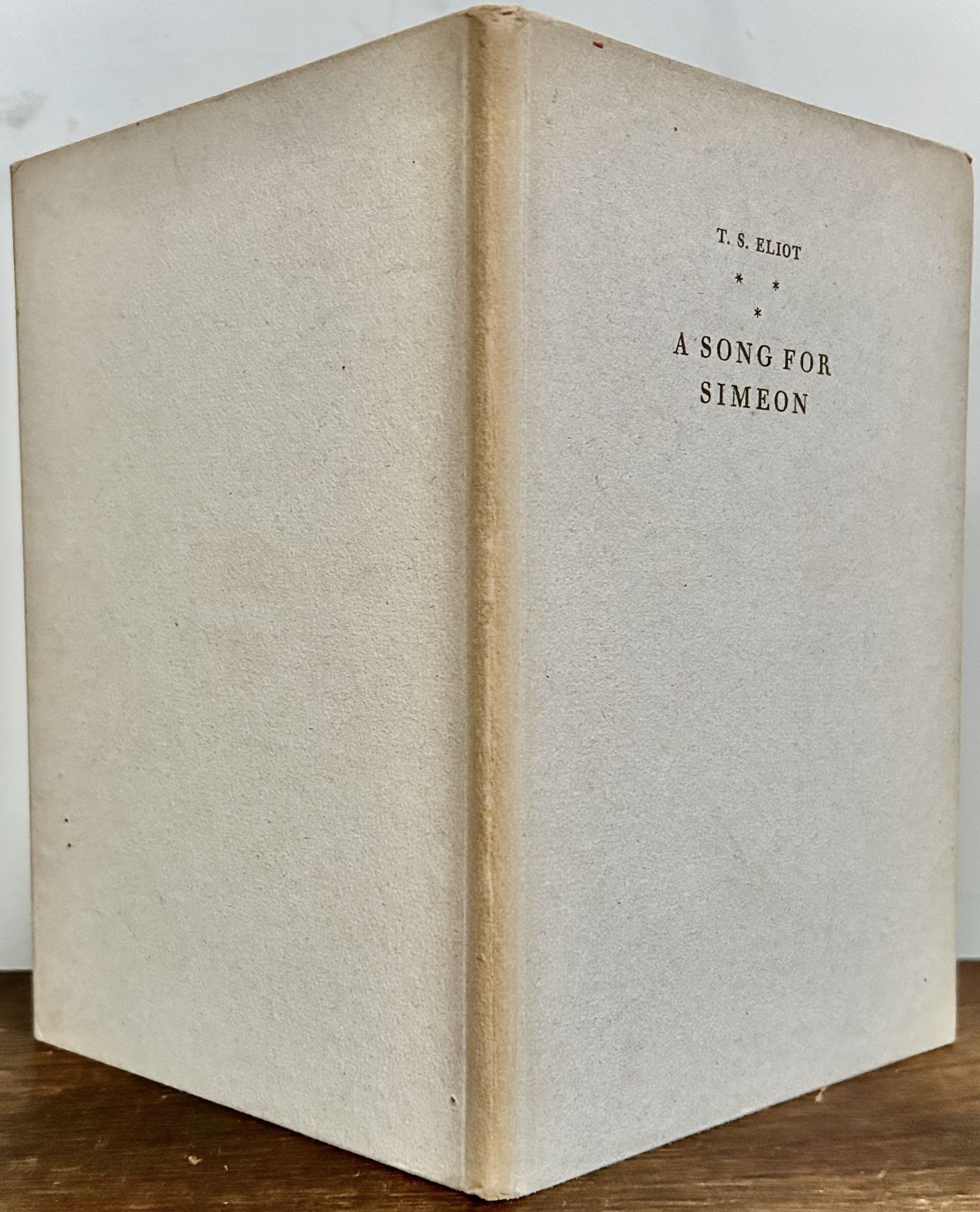 London: Faber and Faber, 1928. First edition. Hardcover. Orig. pale white boards. Near fine. 5 leaves. 22 x 14 cm. Large-paper edition, copy 280 of 500. Signed by Eliot GALLUP A11b. Printed on hand-made paper presenting the limited issue of Ariel poem no. 16. The Mcknight Kauffer illustration very fresh and bright. Gilt lettered front cover title. Spine slightly darkened.