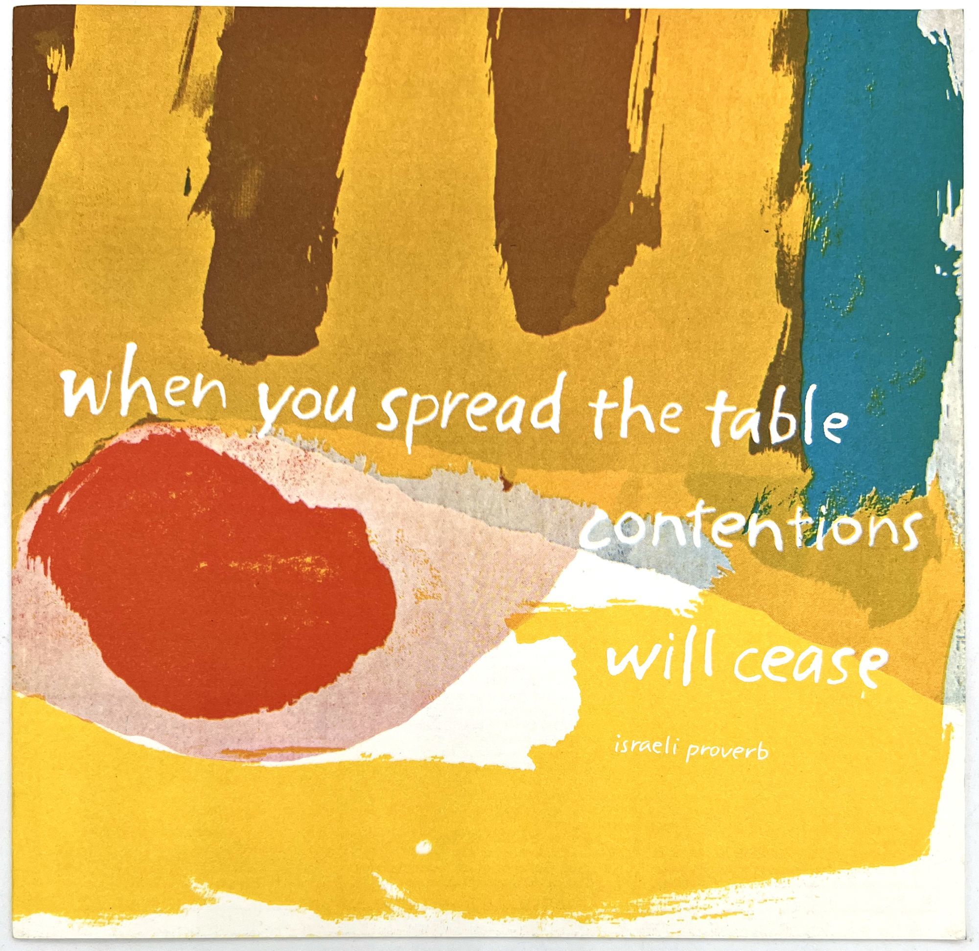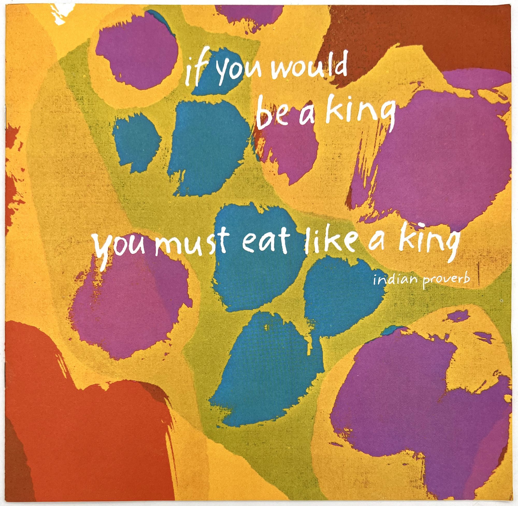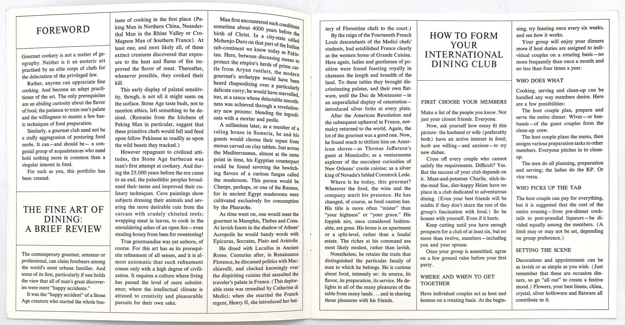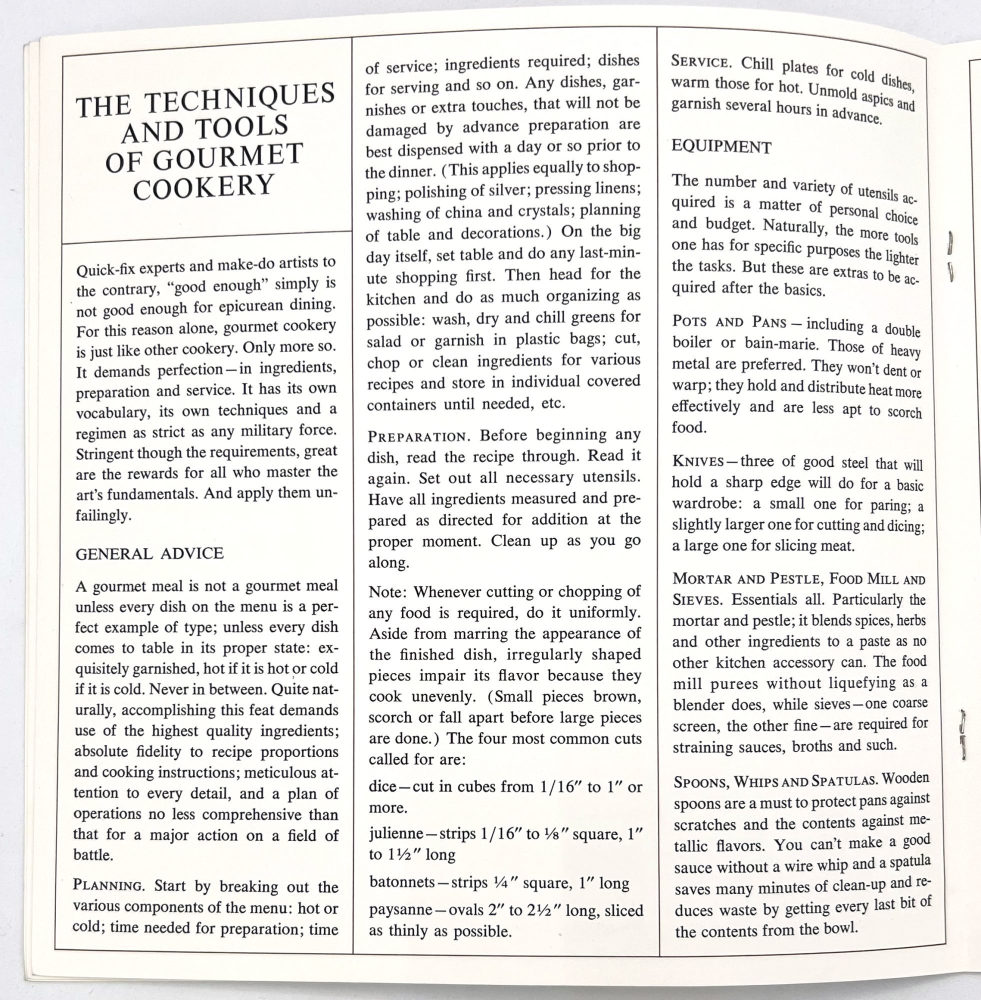 San Francisco, California: Spice Islands Company, 1963. Very good to near-fine. Light wear to extremities.. First edition, first printing. A complete example of the 1963 art book produced by Sister Mary Corita in partnership with Spice Islands brand spices, highlighting the universality of food and community across world cultures. It is comprised of ten (10) stapled booklets, including an introductory booklet. The introductory booklet provides a brief summary of the art of dining in layman's terms, and advice for forming an international dining club. It also includes a list of grocery sources for international foods by state. The nine (9) remaining booklets each focus on a different world cuisine. The countries represented are: France; India; Japan; Germany; Italy; Spain; Greece; Israel; and Sweden. Each cover has a local proverb about food (e.g. India's reads, "If you would be a king, you must eat like a king"). Each booklet begins with a brief history of the country's cuisine, and then offers recipes and sample menus from different regions within the country, or for different purposes. For example, Japan's three menus include Family Food ("Katei Ryori"), Party Food ("Kaiseki Ryori"), and food for a Ceremonial Dinner. Each stapled booklet 9" by 9" is approx. 8-10 pages in length in original illus. wrps. Housed in the original black paper-colored box measuring 9.25" by 9.25" by 0.75" with printed Spice Islands product list inside lower lid. Sister Mary Corita, sometimes Corita Kent (1918-1986), "was an artist with an innovative approach to design and education. By the 1960s, her vibrant serigraphs were drawing international acclaim. Corita's work reflected her concerns about poverty, racism, and war, and her messages of peace and social justice continue to resonate with audiences today" (corita.org).