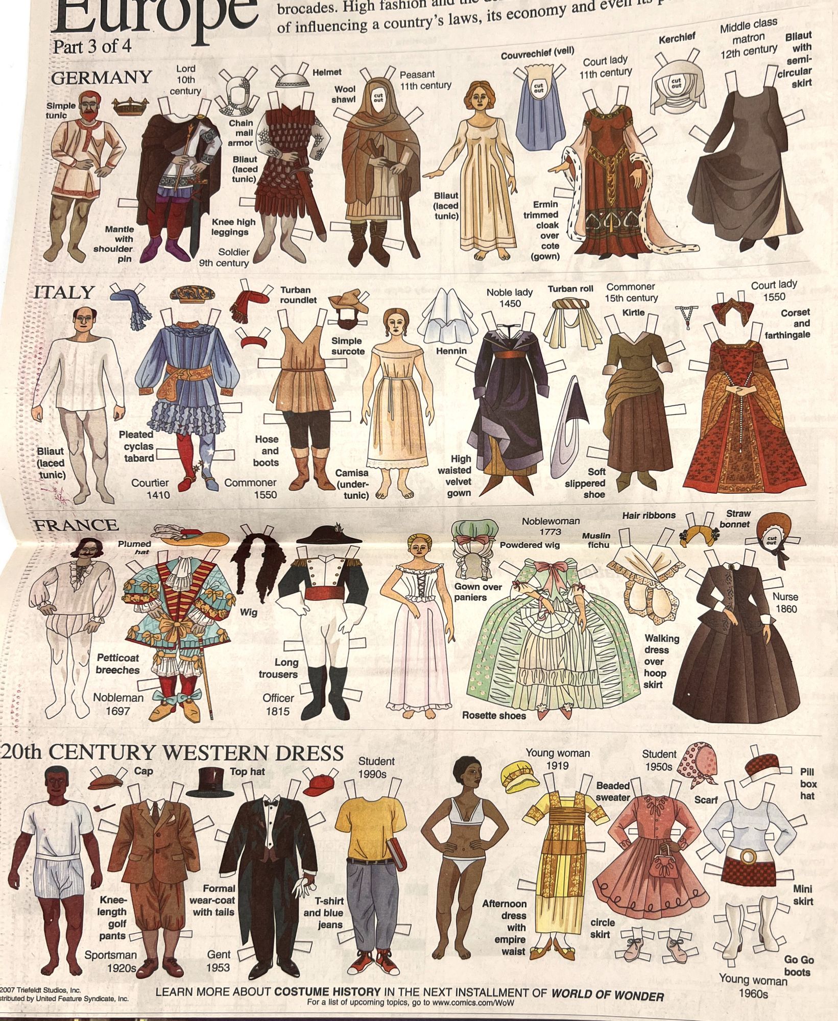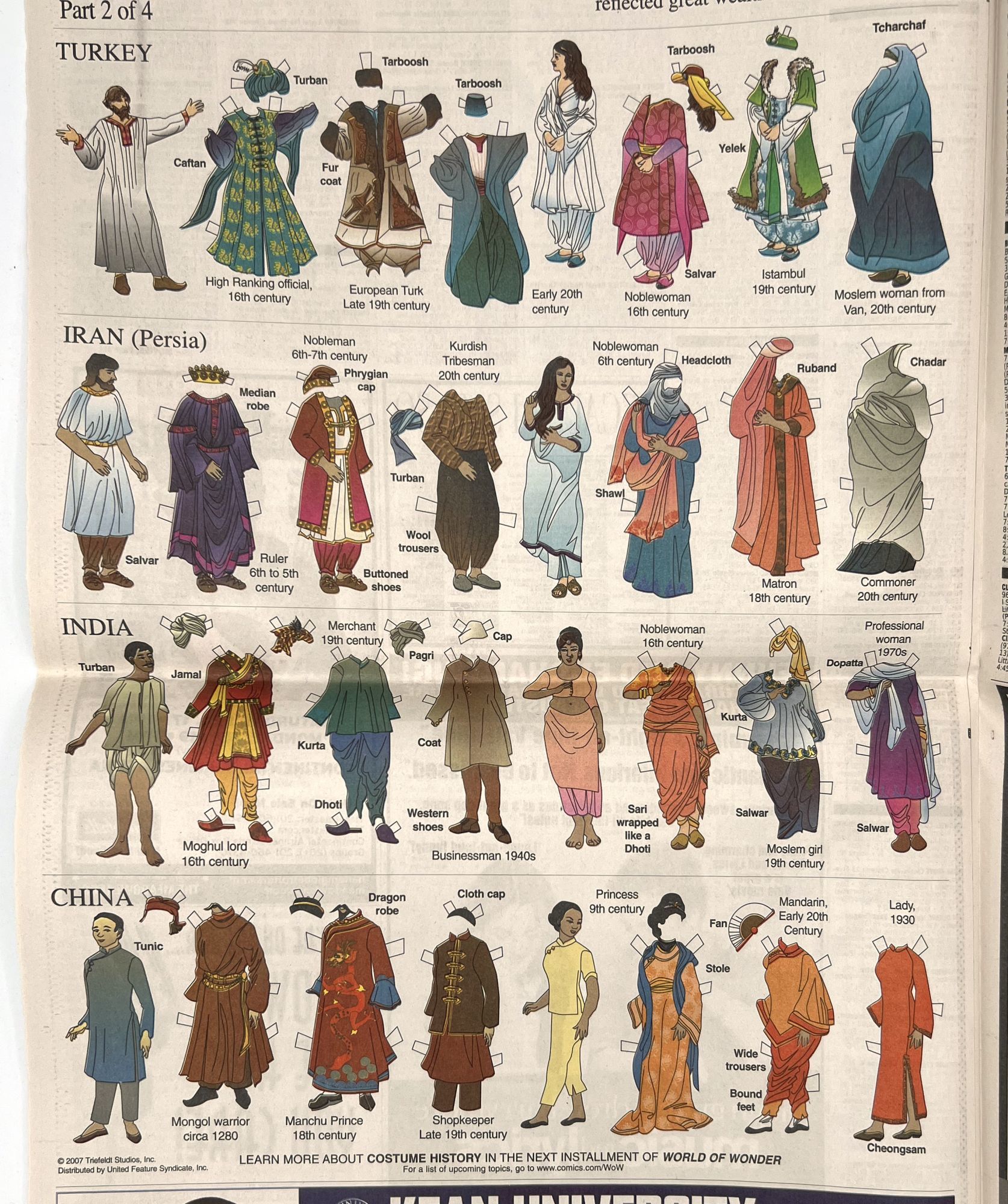 World of Wonder" -- Historical Fashion Paper Doll Newspaper Series Educating Western Audiences About the Diverse History of Fashion and Costume