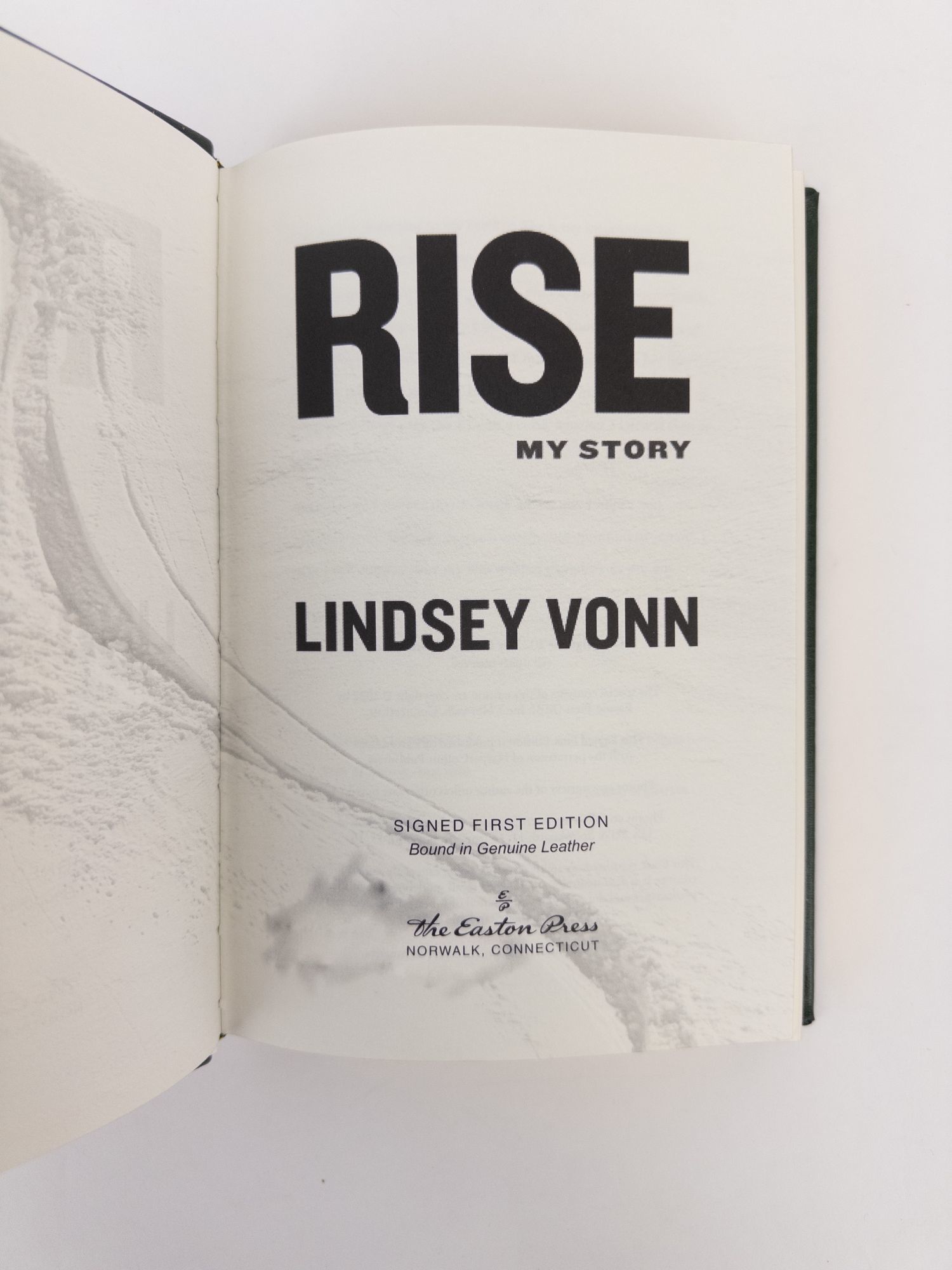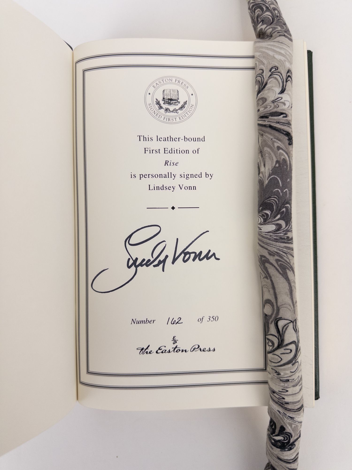 Norwalk, CT: The Easton Press, 2022. Signed First Edition: #162/350. Hardcover. Octavo, 317 pages. In Very Good minus condition. Bound in publisher's decorated green leather with paneling and gilt lettering to spine. Minor general shelf wear to sports. Edges of textblock gilt, moderately scratched at top edge. Signed by Vonn and enumerated on publisher's tipped-in page. Features a Certificate of Authenticity, bookplate and note about the author from the publisher included loose within. Shelved in Case 13. 1381957. Shelved Dupont Bookstore.