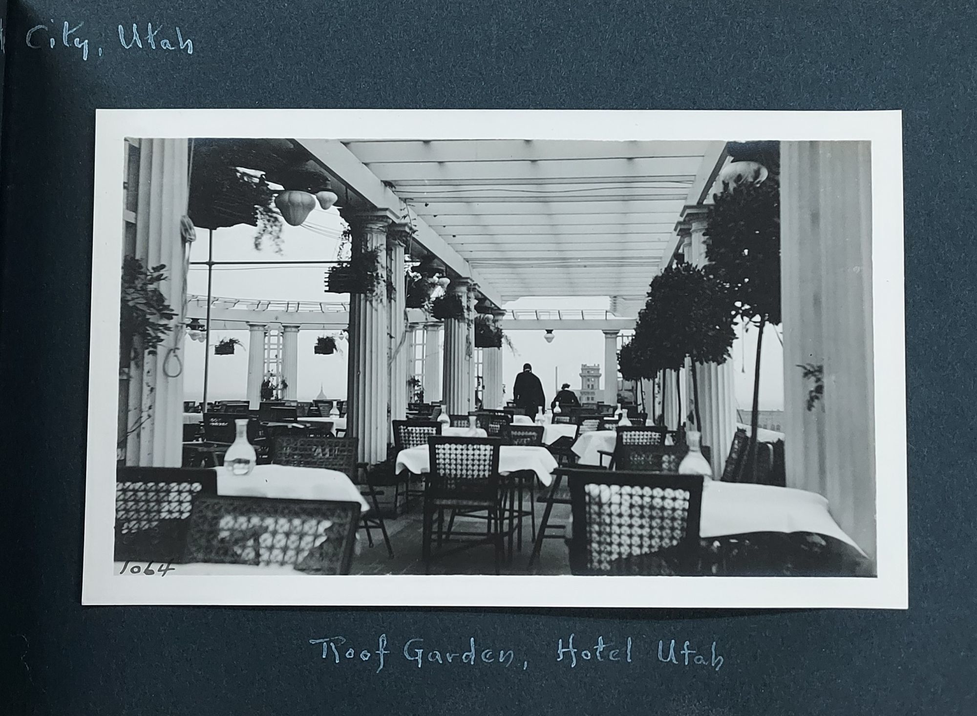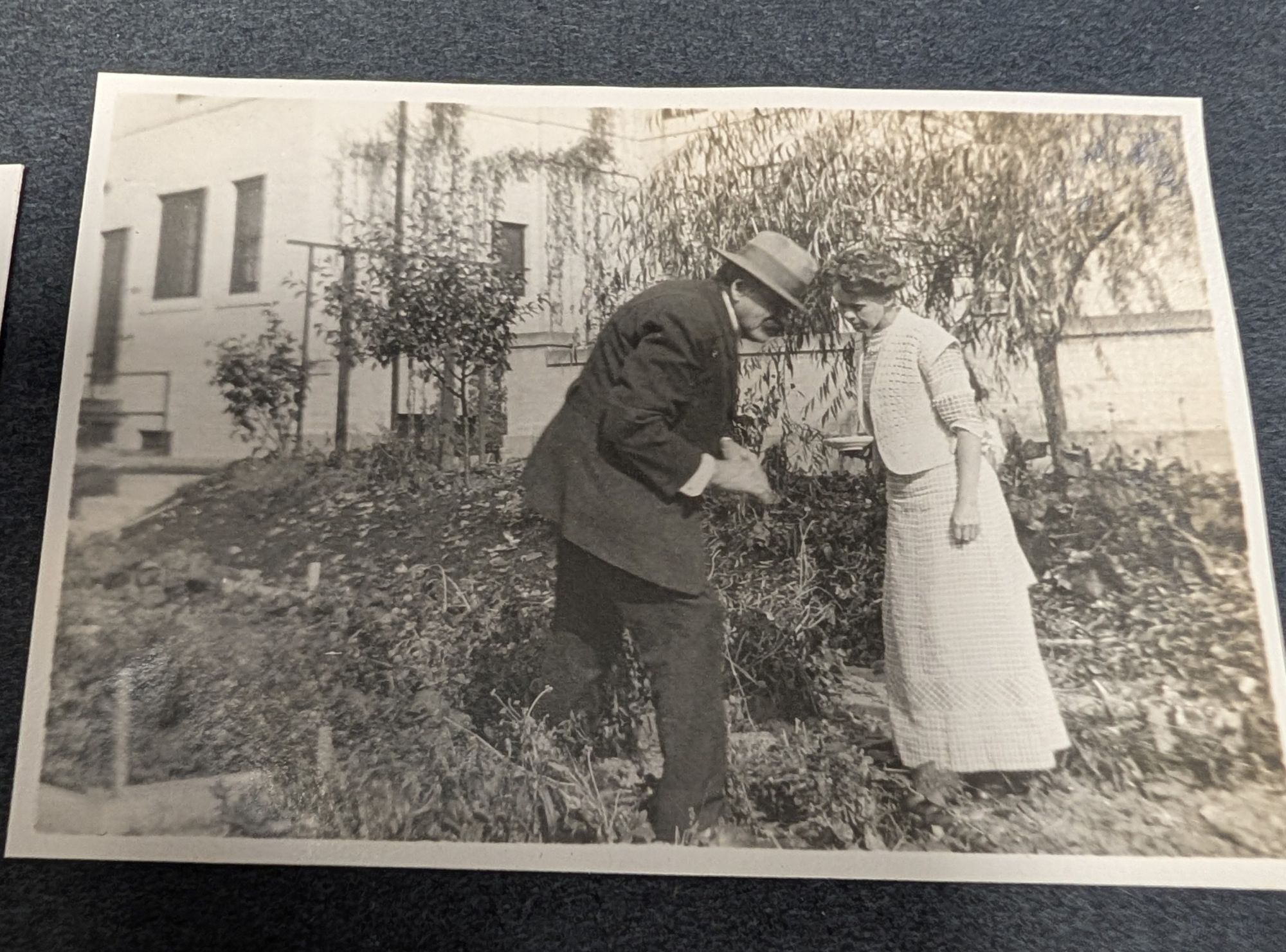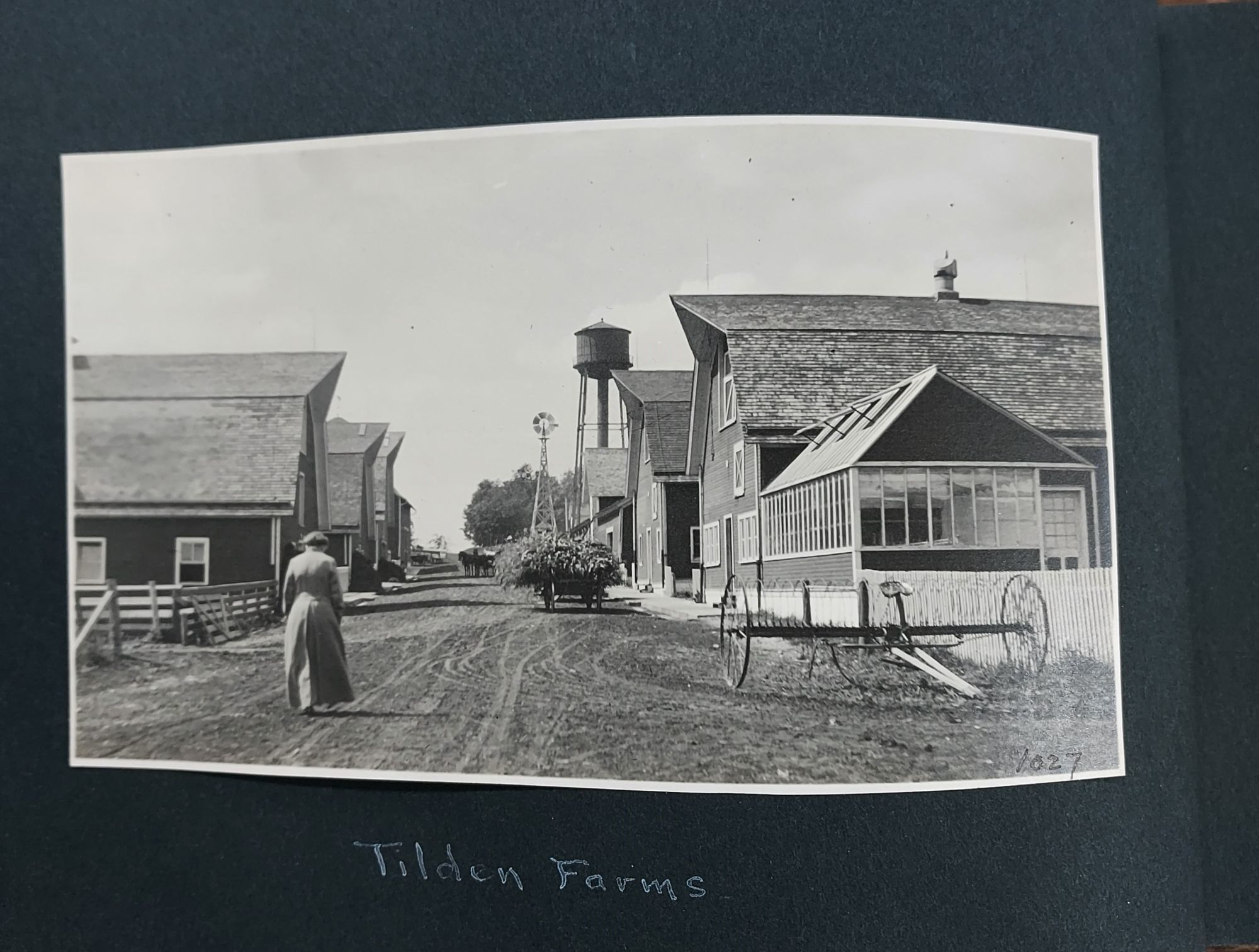 There are quite a few photographs of W. D. Hollister, himself, among the family photographs. One charming photograph depicts Hollister with a woman who appears to be his wife Grace. In this photo, a smiling Hollister is wearing striped pants and smoking a cigar. The albums also include photographs of Tilden Farms in Delavan (WI), a farm in New Lisbon (WI), a farm in Kinbrae (MN), the Public Library in Denver (CO), Dock at St. Maries (ID), and several photographs of Salt Lake City.