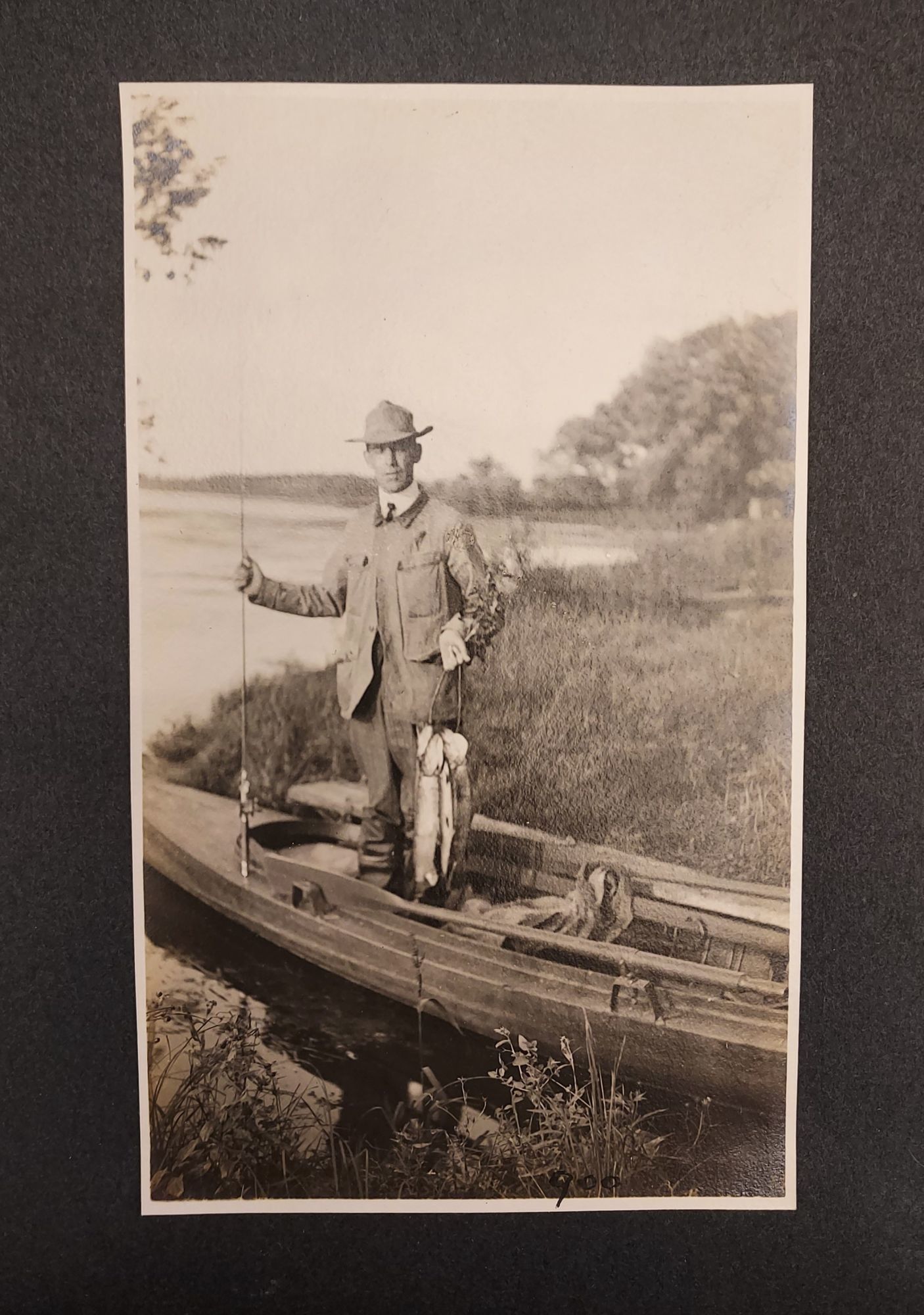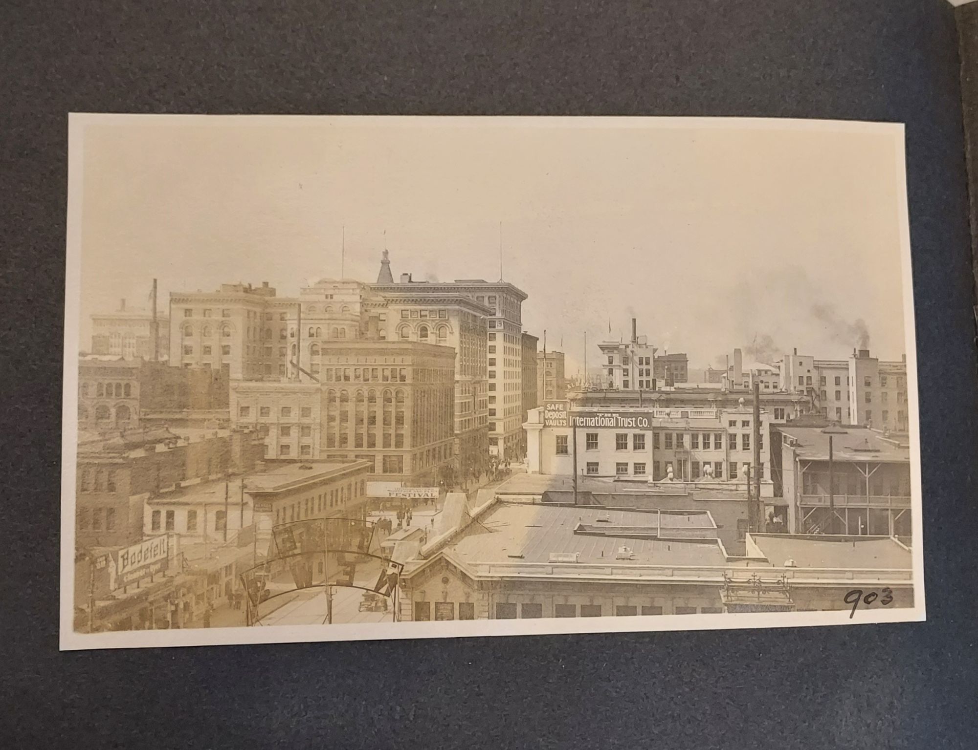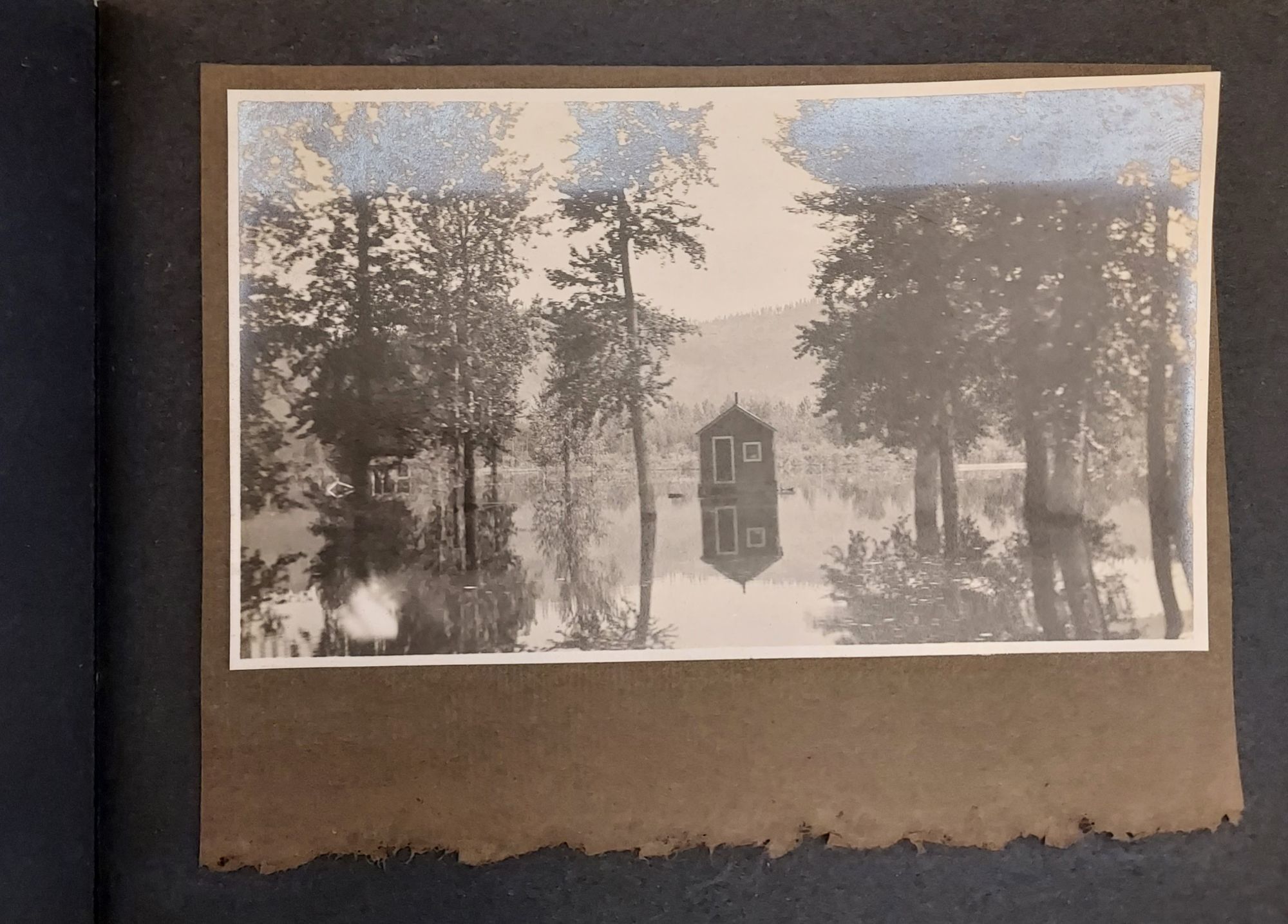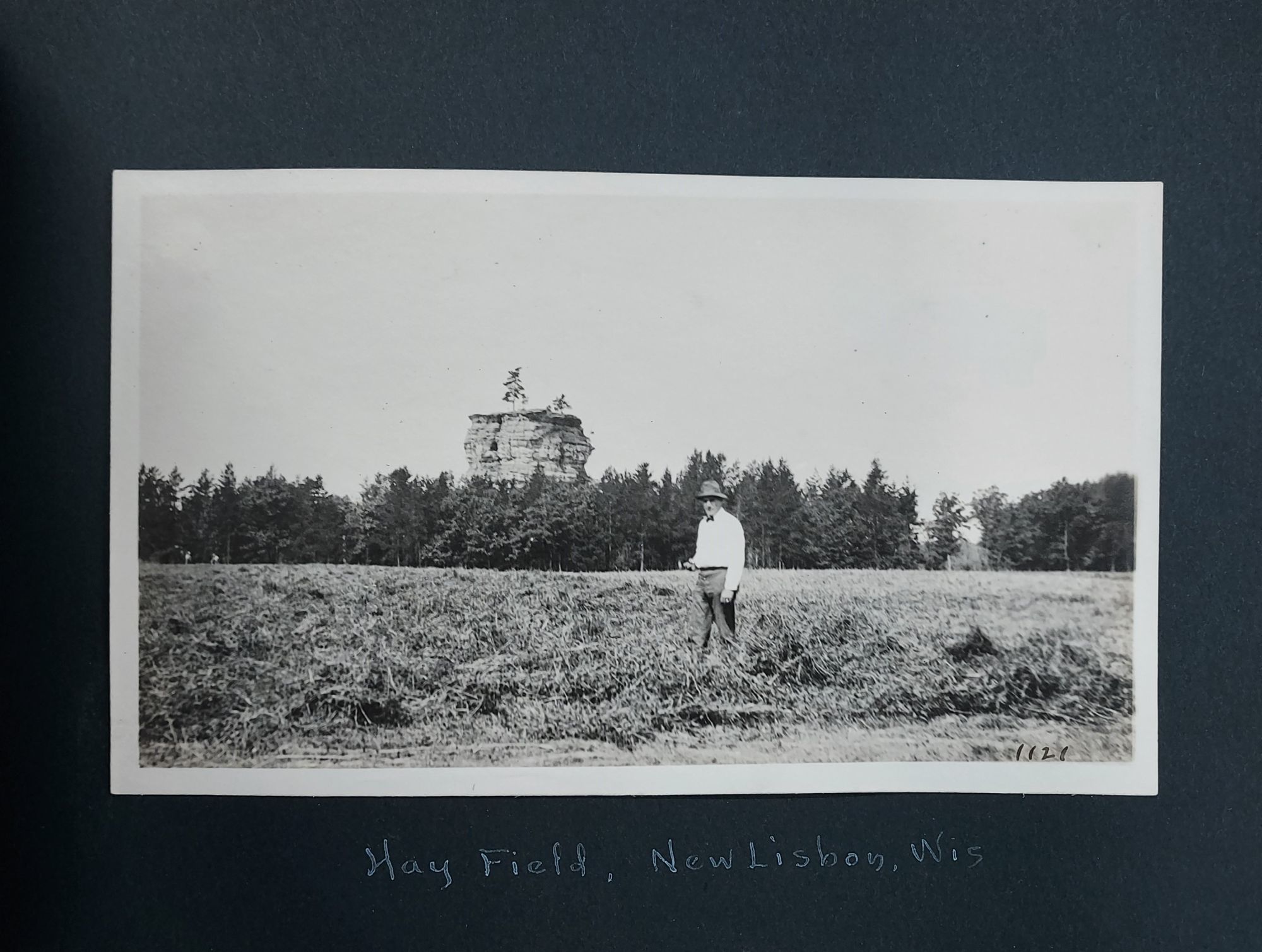 There are quite a few photographs of W. D. Hollister, himself, among the family photographs. One charming photograph depicts Hollister with a woman who appears to be his wife Grace. In this photo, a smiling Hollister is wearing striped pants and smoking a cigar. The albums also include photographs of Tilden Farms in Delavan (WI), a farm in New Lisbon (WI), a farm in Kinbrae (MN), the Public Library in Denver (CO), Dock at St. Maries (ID), and several photographs of Salt Lake City.
