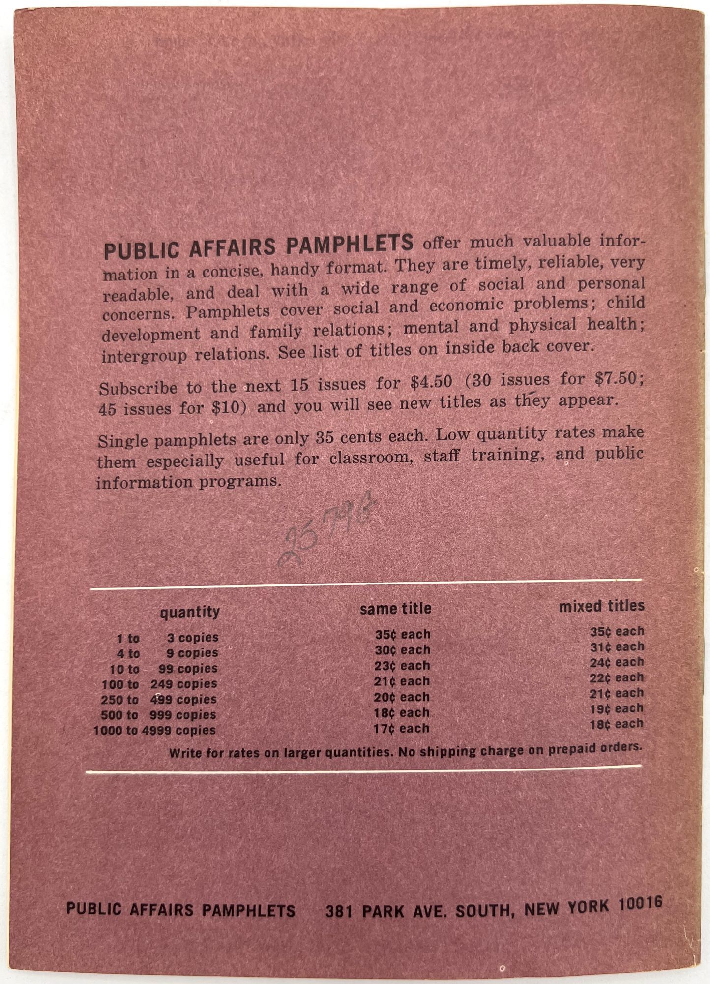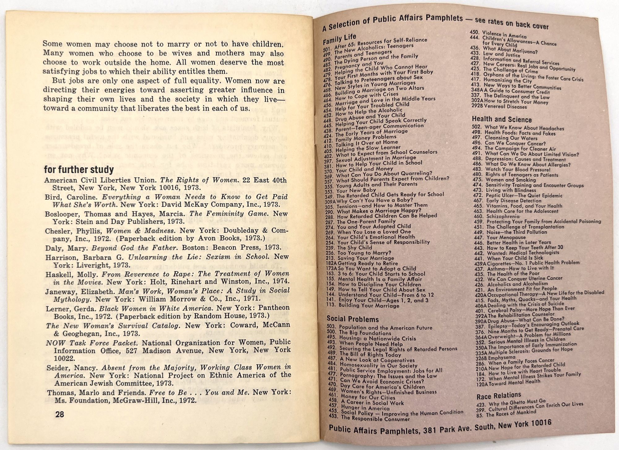 - New York, New York: Public Affairs Pamphlets, 1974