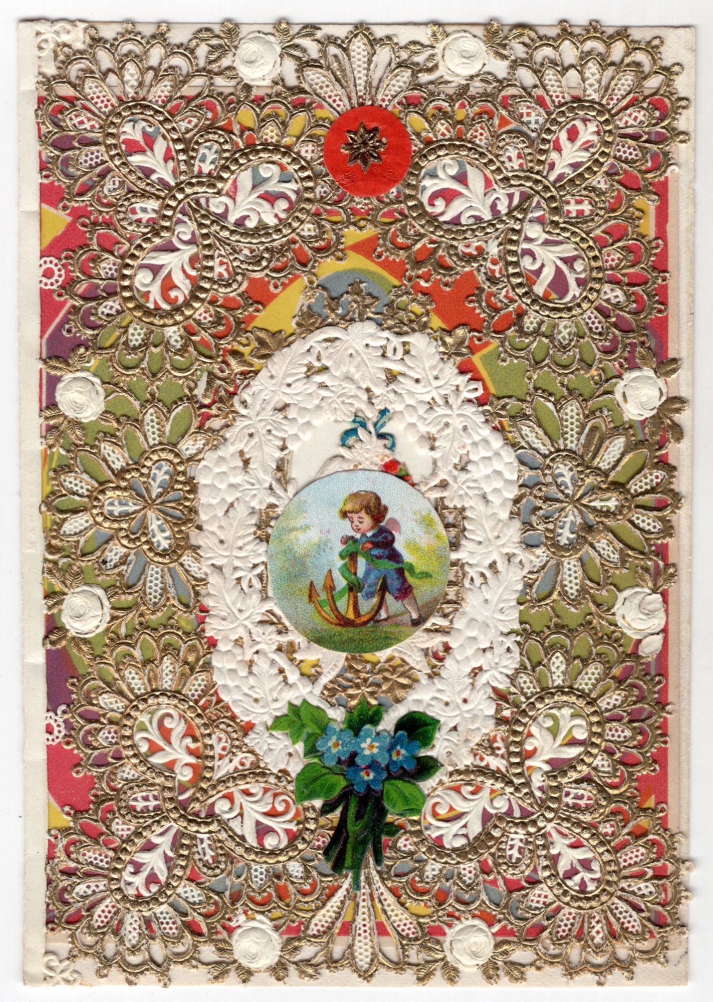 Elaborate and Bright 12mo Valentine with Lace Paper, Embossed Victorian Scrap