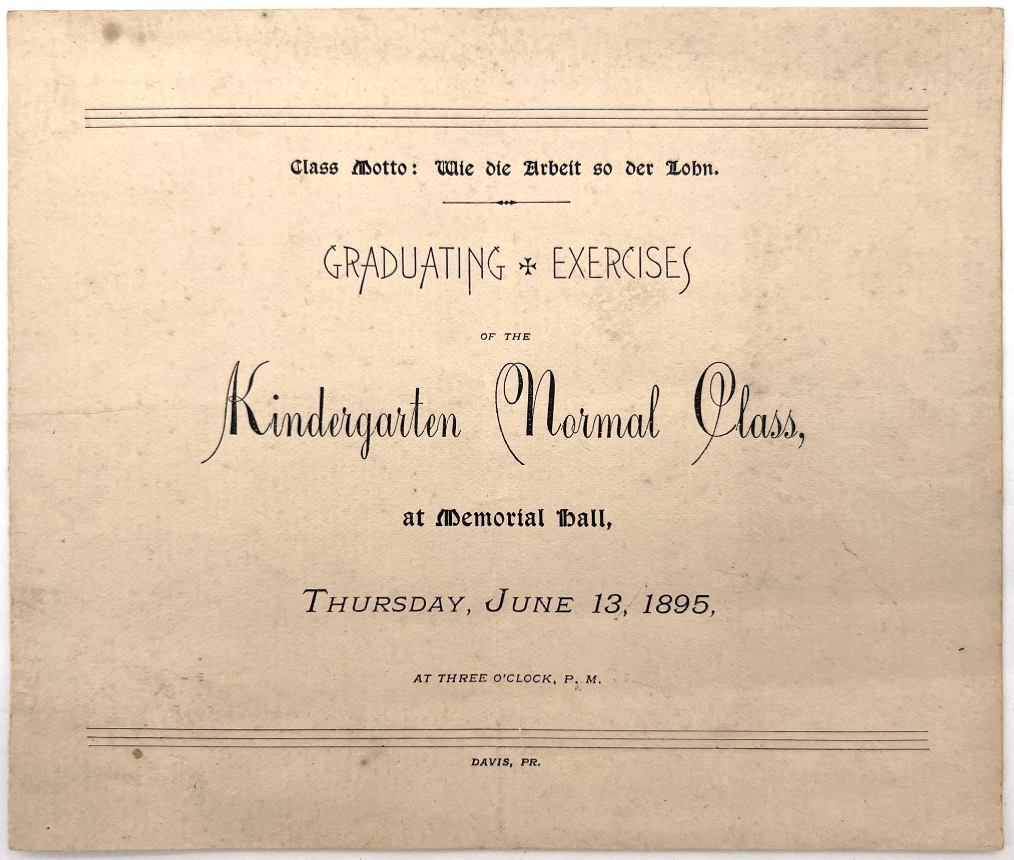 Program for the 1895 Graduating Exercises of the Kindergarten Normal Class