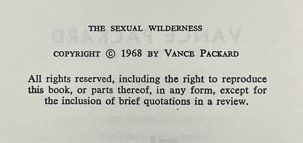 New York: David McKay Company Inc, 1968. First Edition. Hardcover. Very Good/Good. Very Good in a Good jacket, unclipped ($6.95), generally soiled, bumped and with some short tears and creases at the edges. Black cloth, bumped at the head and foot of the spine, with gilt lettering on the spine. Square and firmly bound, clean internally. Packard's work about the sexual revolution and changing dynamics between males and females.