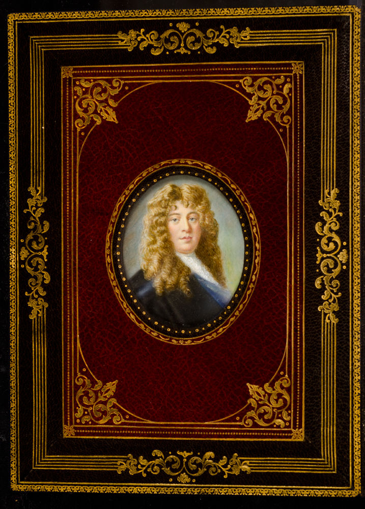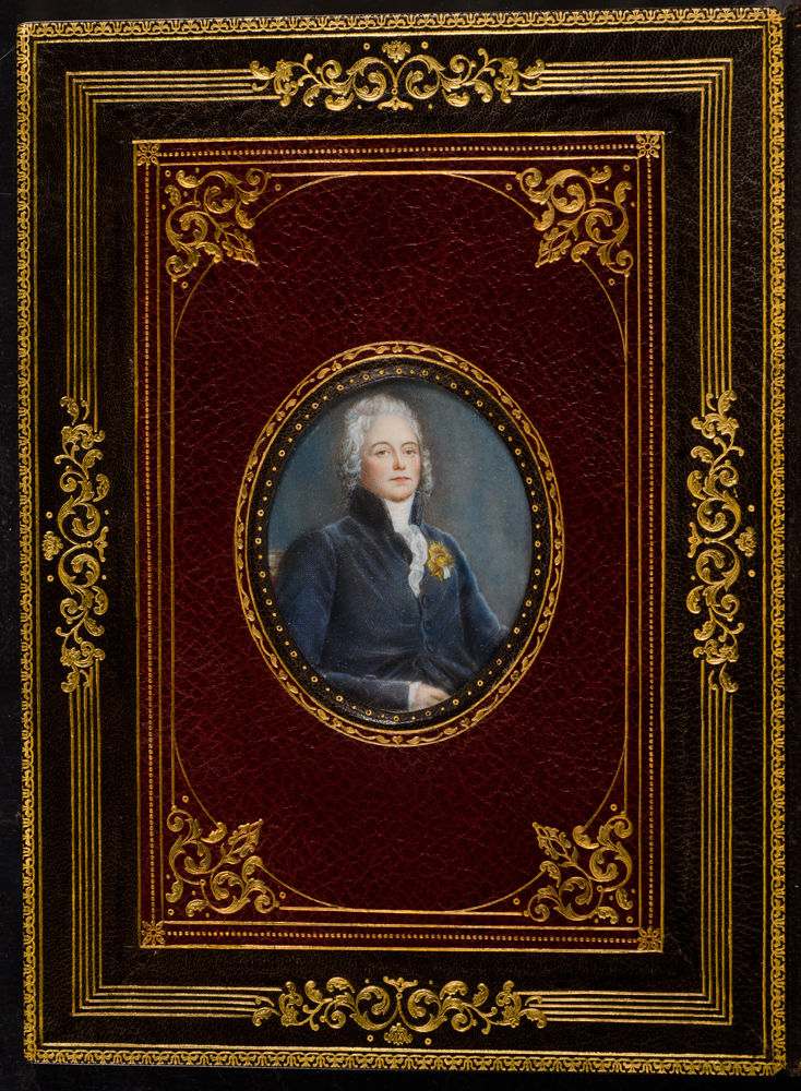 Although named after the English miniaturist Richard Cosway (1742-1821), the desirable “Cosway Binding” with its jewel-like portrait miniature set into a fine binding was first developed at the turn of the century by J.H. Stonehouse, director of London’s Henry Sotheran Booksellers. Their miniatures were painstakingly crafted by the talented painter Miss C. B. Currie (1849-1940). As the style grew in popularity, other publishing houses quickly began to reproduce this technique—each developing their own desirable take on the aesthetic—referred to as “Cosway style.”. Fine.