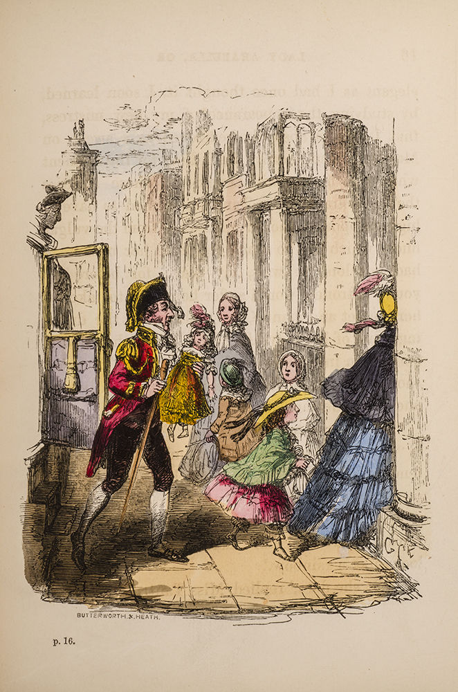 George Cruikshank (1792-1878) was one of the most famous British caricaturists and illustrators during the Regency period. He would form a friendship with Charles Dickens, illustrating many of his books, and later in life would be active in the temperance movement.