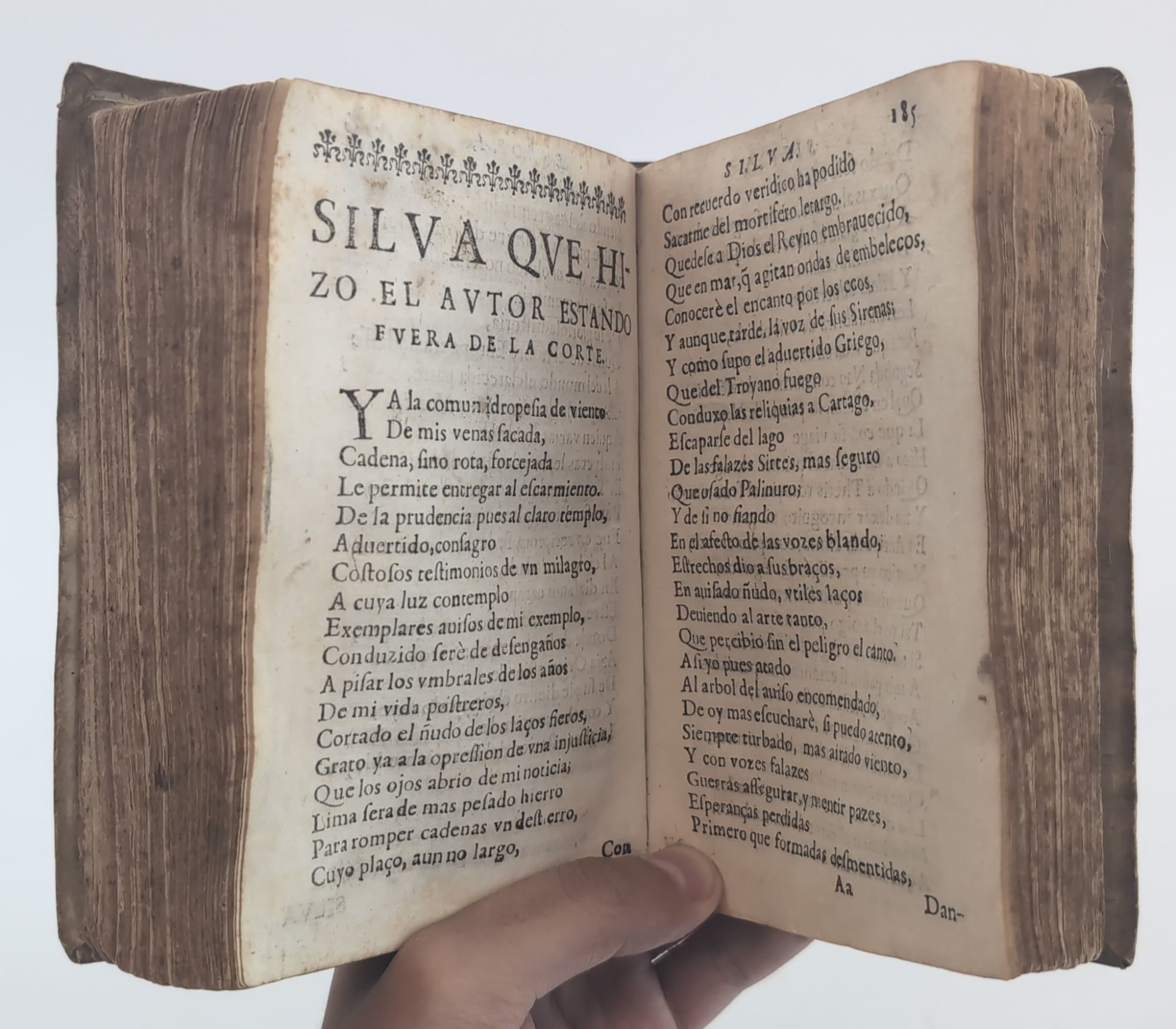 Barcelona: Antonio Lacavalleria, 1648. Later Edition. Hardcover. Octavo, [2], 284 leaves. In Good condition. Bound in full contemporary vellum with handwritten ink titling to spine. Vellum is yellowed, stained, and wrinkled with age, with light plus wear to edges and corners of boards and to head and tail of spine. Text block with light plus age toning and foxing. Pencil annotations to front free endpaper. Water and insect damage through leaf 26, impacting printed area and slightly impeding legibility. Scattered small stains throughout. TG Consignment. Shelved in Room G. Juan de Tassis y Peralta, Conde de Villamediana (c. 1582-1622) was a Spanish Baroque poet and diplomat. 1382176. Special Collections.