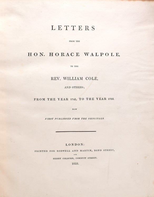 Letters from the Hon. Horace Walpole to the Rev. William Cole, and Others, From the Year 1745, to the Year 1782