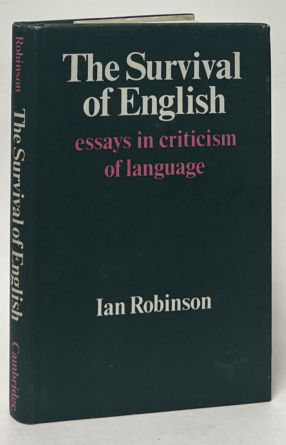 Cambridge: Cambridge University Press, 1973. First Edition. Hardcover. Near Fine/Near Fine. Near Fine in a Near Fine jacket, unclipped ($11.95 and £3.50), lightly rubbed at the edges. Green cloth with gilt lettering on the spine. Firmly bound with a slight forward lean, former owner's names on the front endpaper, clean otherwise. Robinson's analysis of the language of England's religion, politics, serious journalism, love, and literature. "It is an uncomfortable book, and meant to be.