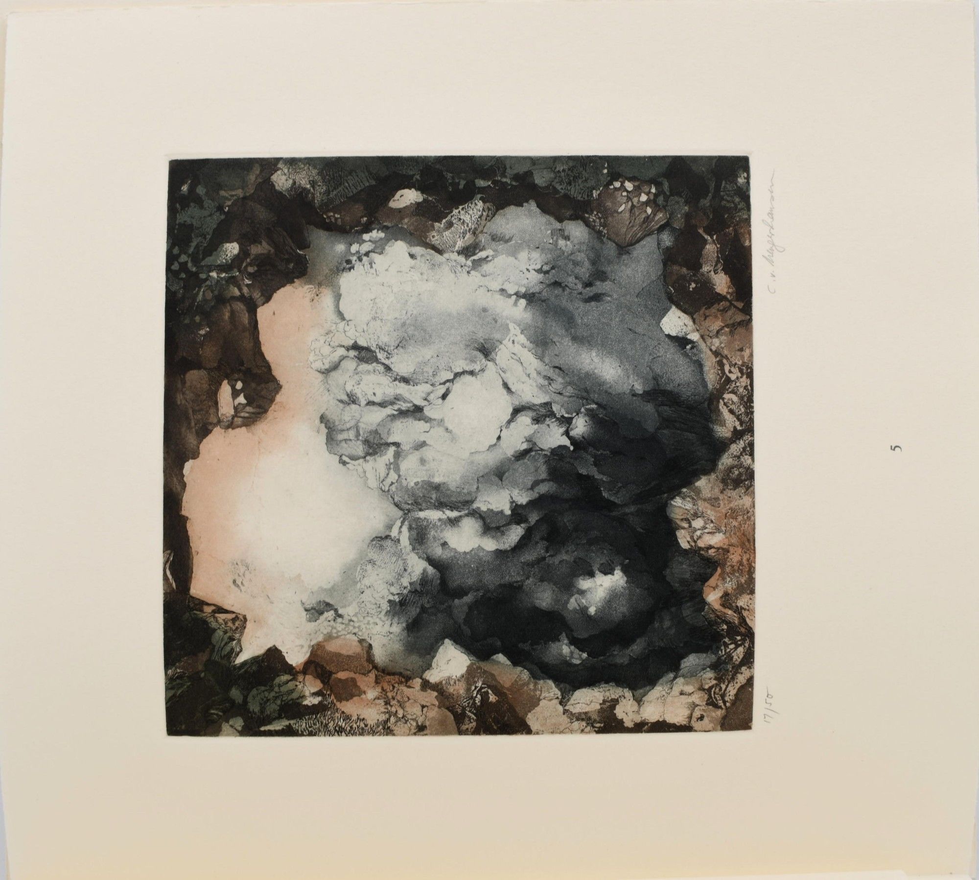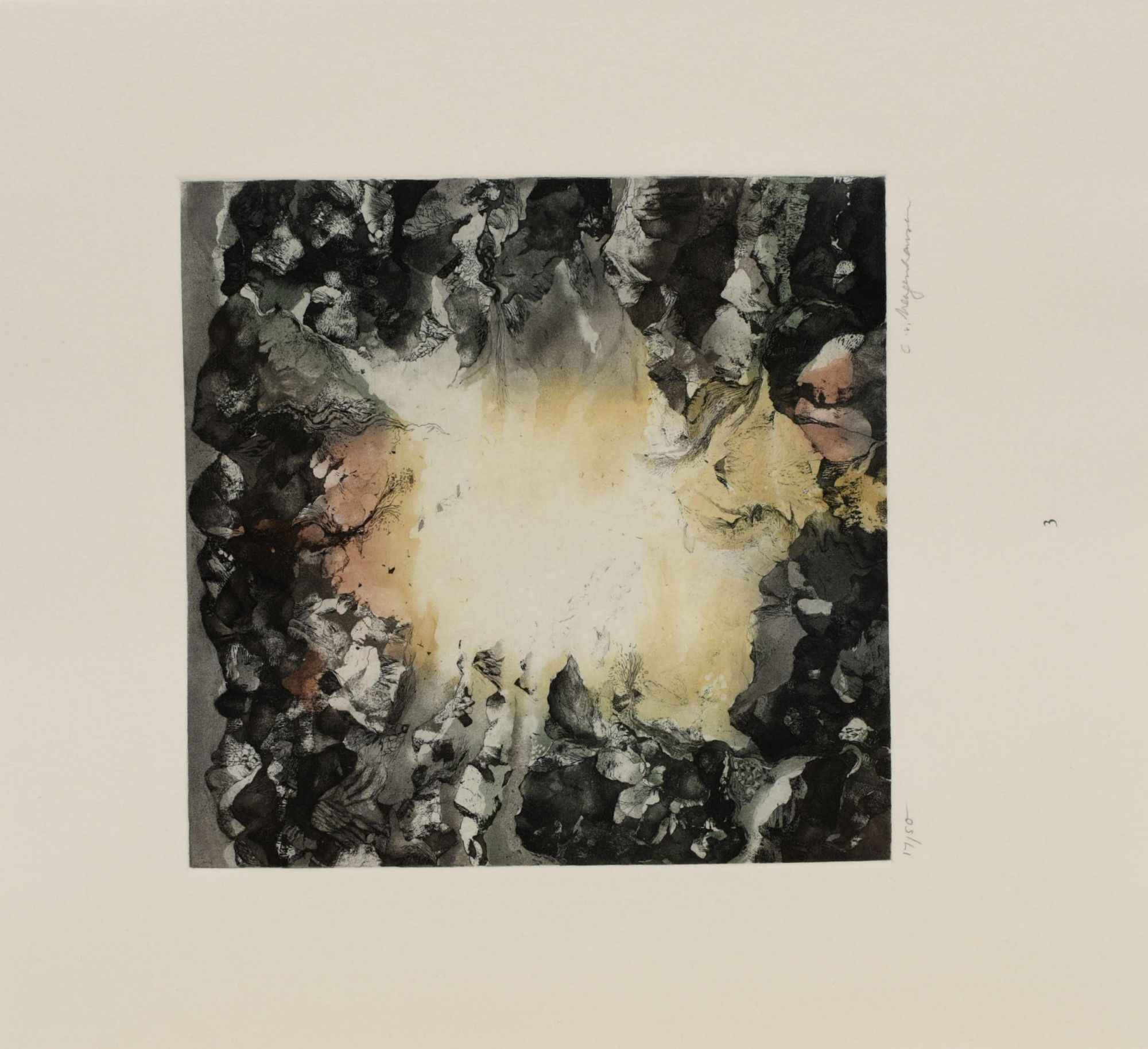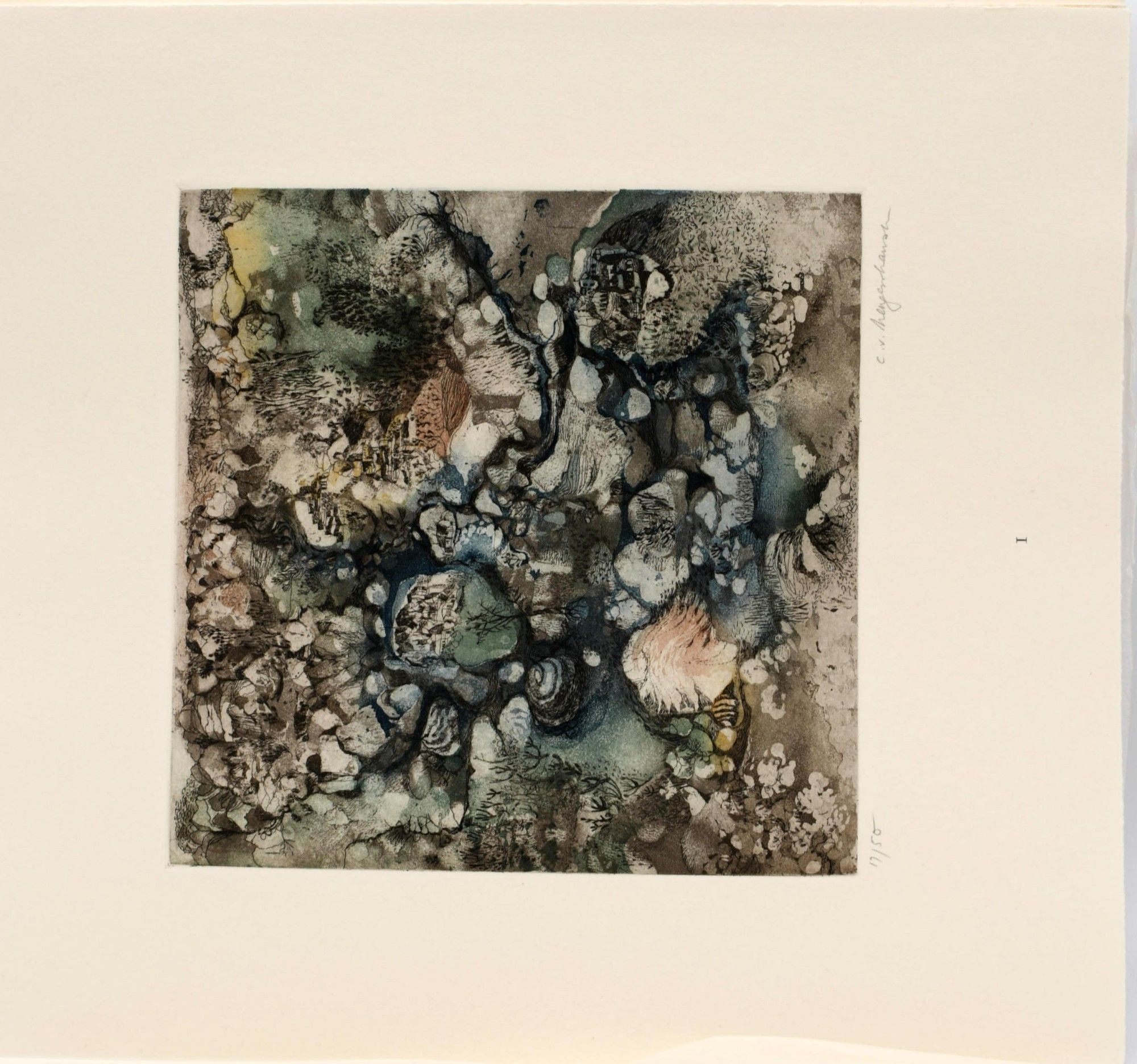 Del Mar, California: [Ettan Press], 1980. Fine binding. Large quarto; portfolio with the text of a 19th century Sufi story from "Tales of the Dervishes", translated from the Arabic by Idries Shah, and accompanied by three signed and numbered color etchings by Cornelia von Mengershausen; [7] pages from a folded sheet.~~Printed in an edition of 55 of which the first 50 are numbered 1-15, of which this is #17 and housed in the printer's linen-covered portfolio.~. Fine binding.