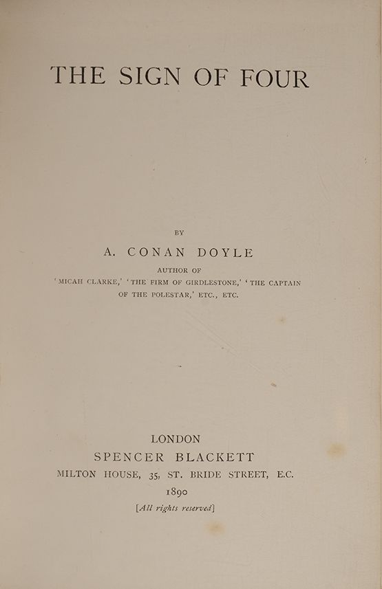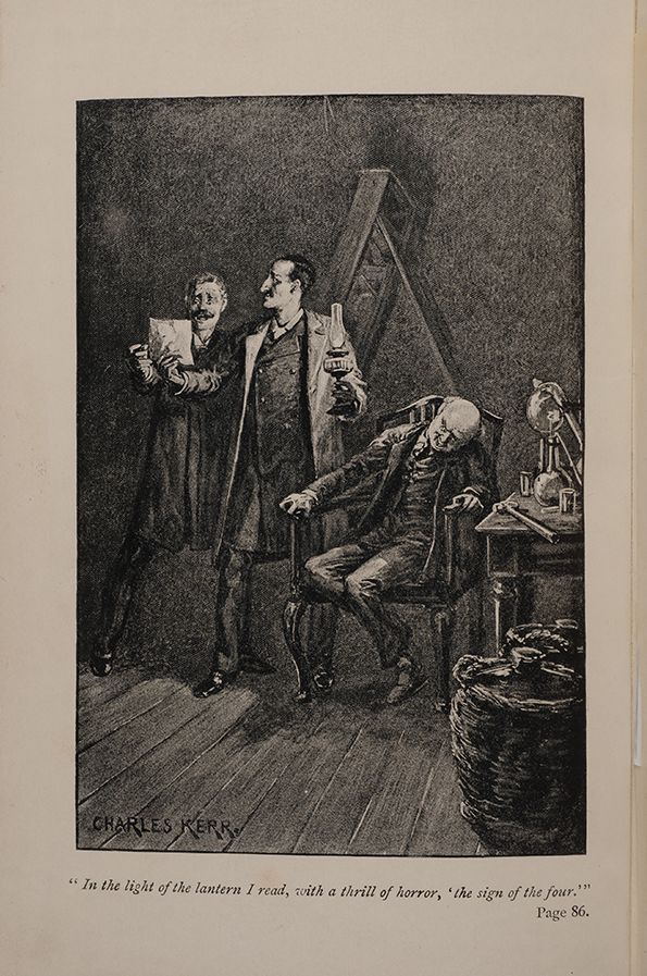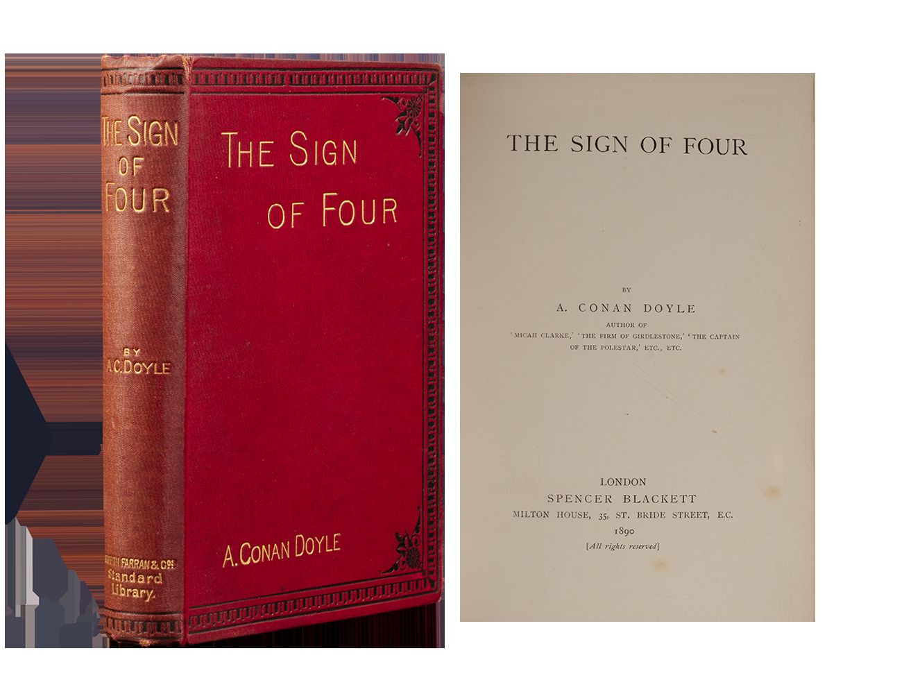 The Sign of the Four (also called The Sign of Four) is Doyle’s second Sherlock Holmes story after A Study in Scarlet. The genre blending murder mystery-adventure-romance follows Holmes and Watson as they search for Miss Mary Morstan’s missing father and lost treasure. First published in Lippincott's Monthly Magazine (1890), the novel was soon released in book form. Initially receiving only moderate success, after the publication of the stories in Adventures (1892) and Memoirs (1894) its popularity soared.