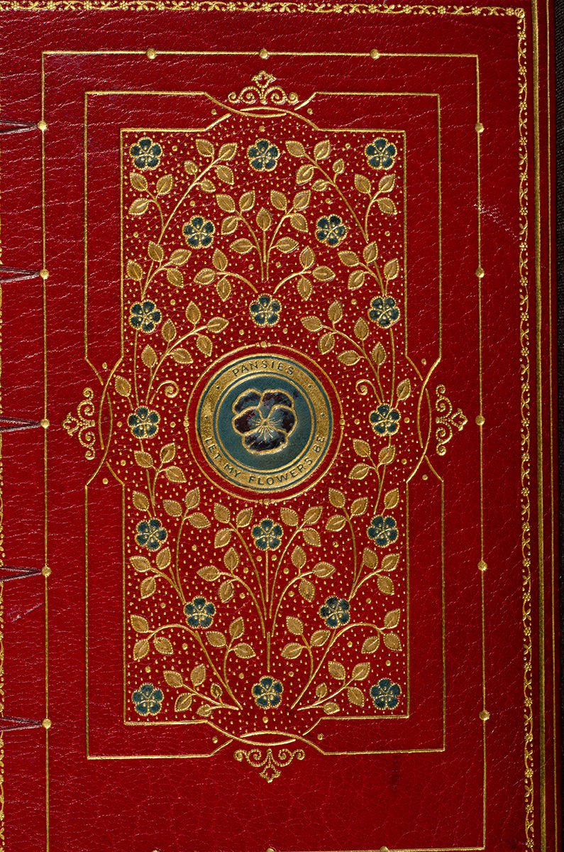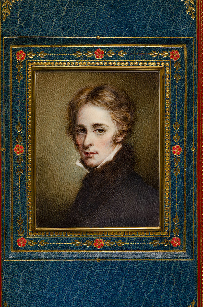 The story of the Sangorski & Sutcliffe Bindery reads like something out of a novel—when two of Douglas Cockrell’s talented apprentices, Frances Sangorski and George Sutcliffe, were laid off during an economic downturn they began working out of an attic. Eventually their bindery would be famous for its intricate multicolored leather inlays and elaborate gold and jeweled bindings. Although named after the English miniaturist Richard Cosway (1742-1821), the desirable “Cosway Binding” with its jewel-like portrait miniature set into a fine binding was first developed at the turn of the century by J.H. Stonehouse, director of London’s Henry Sotheran Booksellers. Their miniatures were painstakingly crafted by the talented painter Miss C. B. Currie (1849-1940). As the style grew in popularity, other publishing houses quickly began to reproduce this technique—each developing their own desirable take on the aesthetic—referred to as “Cosway style.”. Fine.