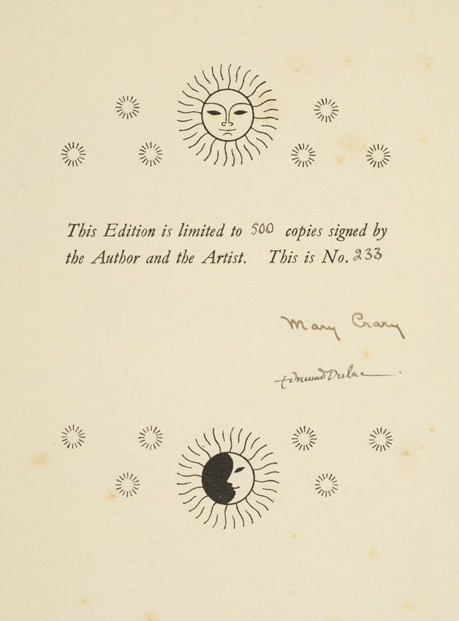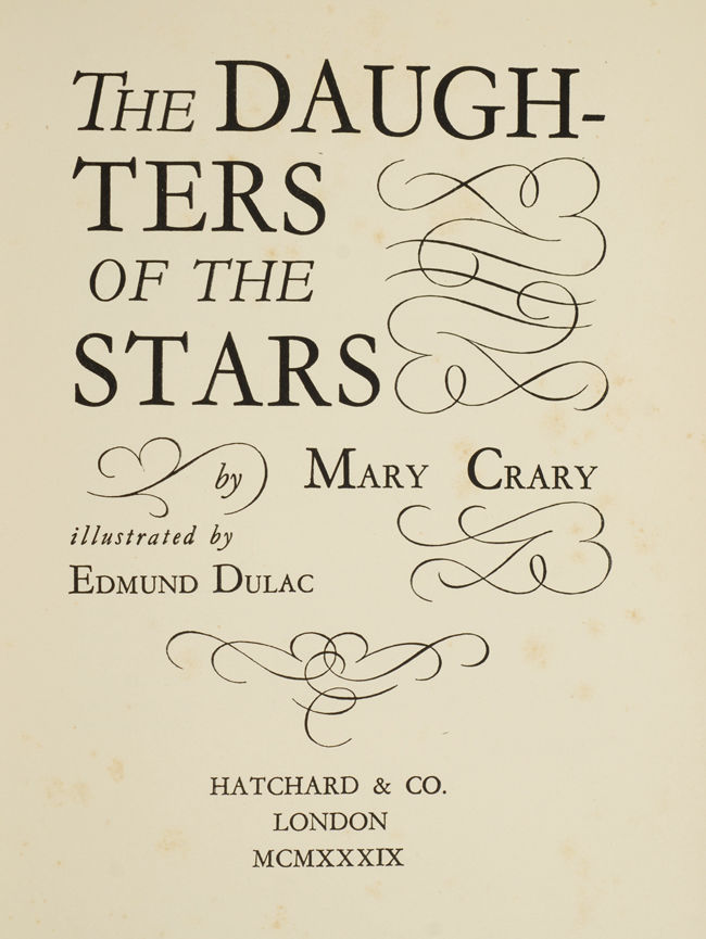 “Publication of this book encountered delays and difficulties because of the outbreak of World War II. Since paper and workmen were fast being commandeered by the British government, the book was rushed into print despite the fact that only 2 Dulac illustrations were finished. Once published, the book received mixed reviews…The redoubtable William Lyon Phelps of Yale also wrote a review stating that Mary Crary’s book ‘…is a fairy story full of grace, beauty, wit, humor and charm…It is meant to be very high praise when I add that the illustrations by Dulac are worthy of the book. They add to its beauty’” (Hughey). However, the illustrations were not the only thing that Dulac designed for this book, he can be credited with the head and tail pieces and overall look.