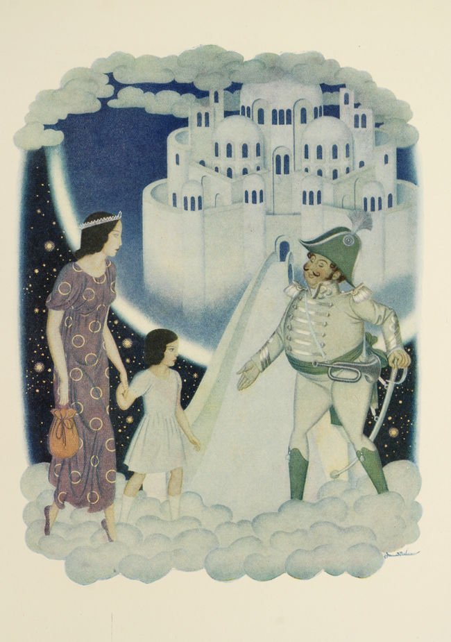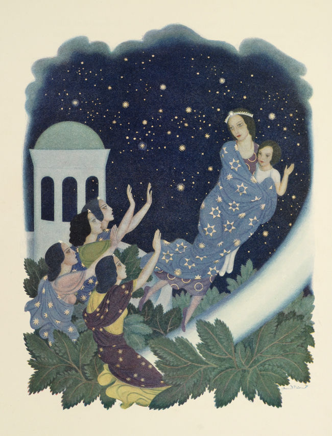 French-born anglophile Edmond Dulac (1882-1953) was one of the most prized artists of the “golden age” of book illustration. A gifted artist, especially in the medium of watercolor, Dulac’s ability to render luxurious detail and subtle emotions is otherworldly. He is best known for his illustrations for books and magazines, although he also designed for the stage and wrote music; in moments of financial insecurity he produced serialized cartoons and became an authority on postage stamp design (White).