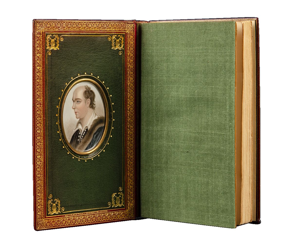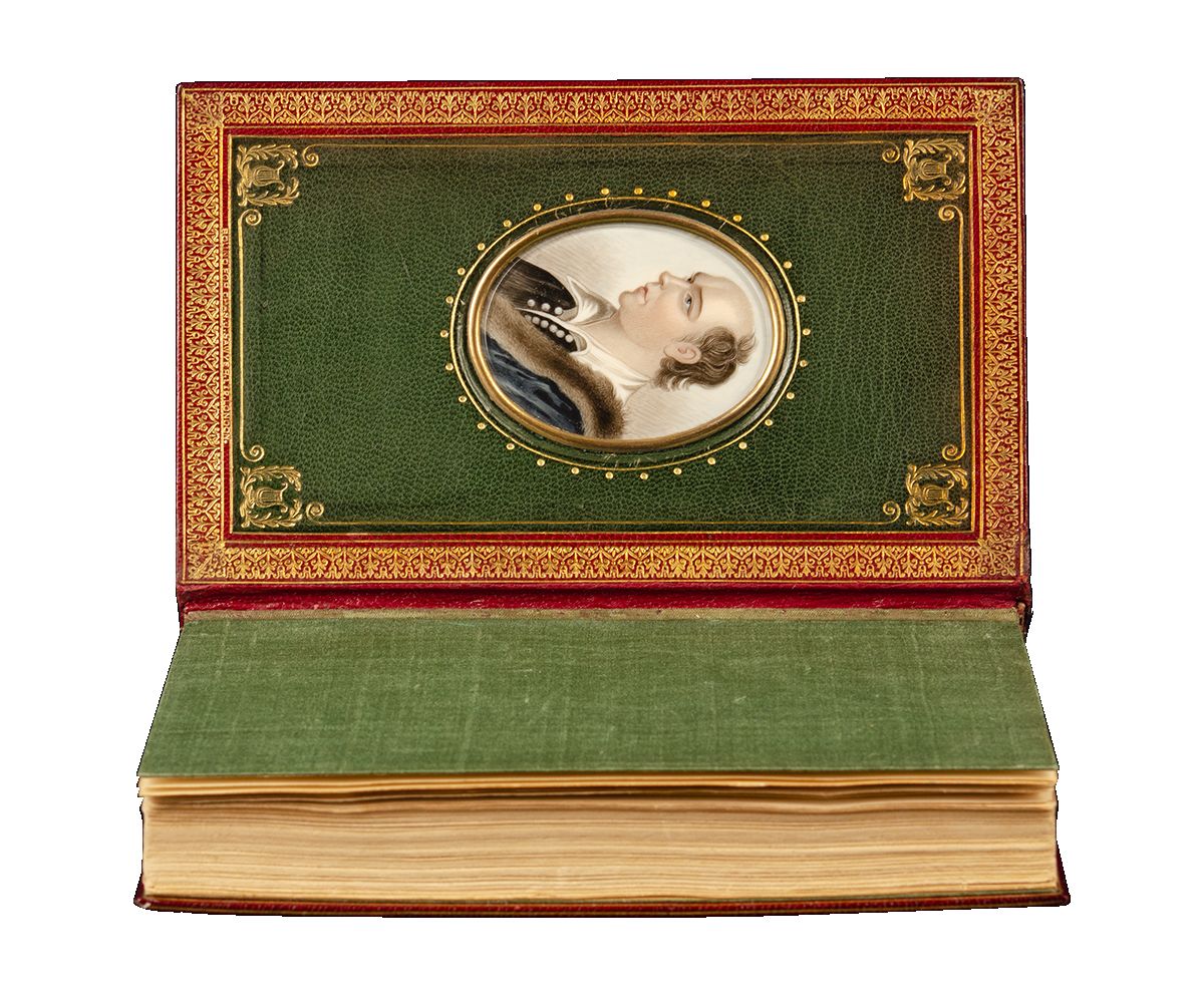 The story of the Sangorski & Sutcliffe Bindery reads like something out of a novel—when two of Douglas Cockrell’s talented apprentices, Frances Sangorski and George Sutcliffe, were laid off during an economic downturn they began working out of an attic. Eventually their bindery would be famous for its intricate multicolored leather inlays and elaborate gold and jeweled bindings. Although named after the English miniaturist Richard Cosway (1742-1821), the desirable “Cosway Binding” with its jewel-like portrait miniature set into a fine binding was first developed at the turn of the century by J.H. Stonehouse, director of London’s Henry Sotheran Booksellers. Their miniatures were painstakingly crafted by the talented painter Miss C. B. Currie (1849-1940). As the style grew in popularity, other publishing houses quickly began to reproduce this technique—each developing their own desirable take on the aesthetic—referred to as “Cosway style.”. Near Fine.