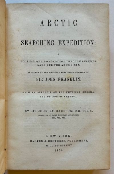 New York: Harper & Brothers, 1852. Cloth. Very Good. A solid copy of the 1852 1st American edition. Tight and VG to VG+ in its dark boards, with decorative blindstamped bordering along the panels and bright gilt-titling at the spine. Light wear to the spine ends, with just a bit of loss at the spine crown. Small vintage Troy, NY bookseller blindstamp at the front free endpaper, light foxing to the preliminaries (pages otherwise very bright and crisp, including the 8 woodcuts and various tables sprinkled throughout the text). Thick octavo, with sections at the rear including "Eskimo", "Kutchin", "Chepewyan", "Dog-Rib" and "Mauvais Monde" vocabularies. And, finally, a number of pages devoted to "valuable works in the departments of biography and history" and "fresh books of travel and adventure", all published and offered by Harper & Brothers.