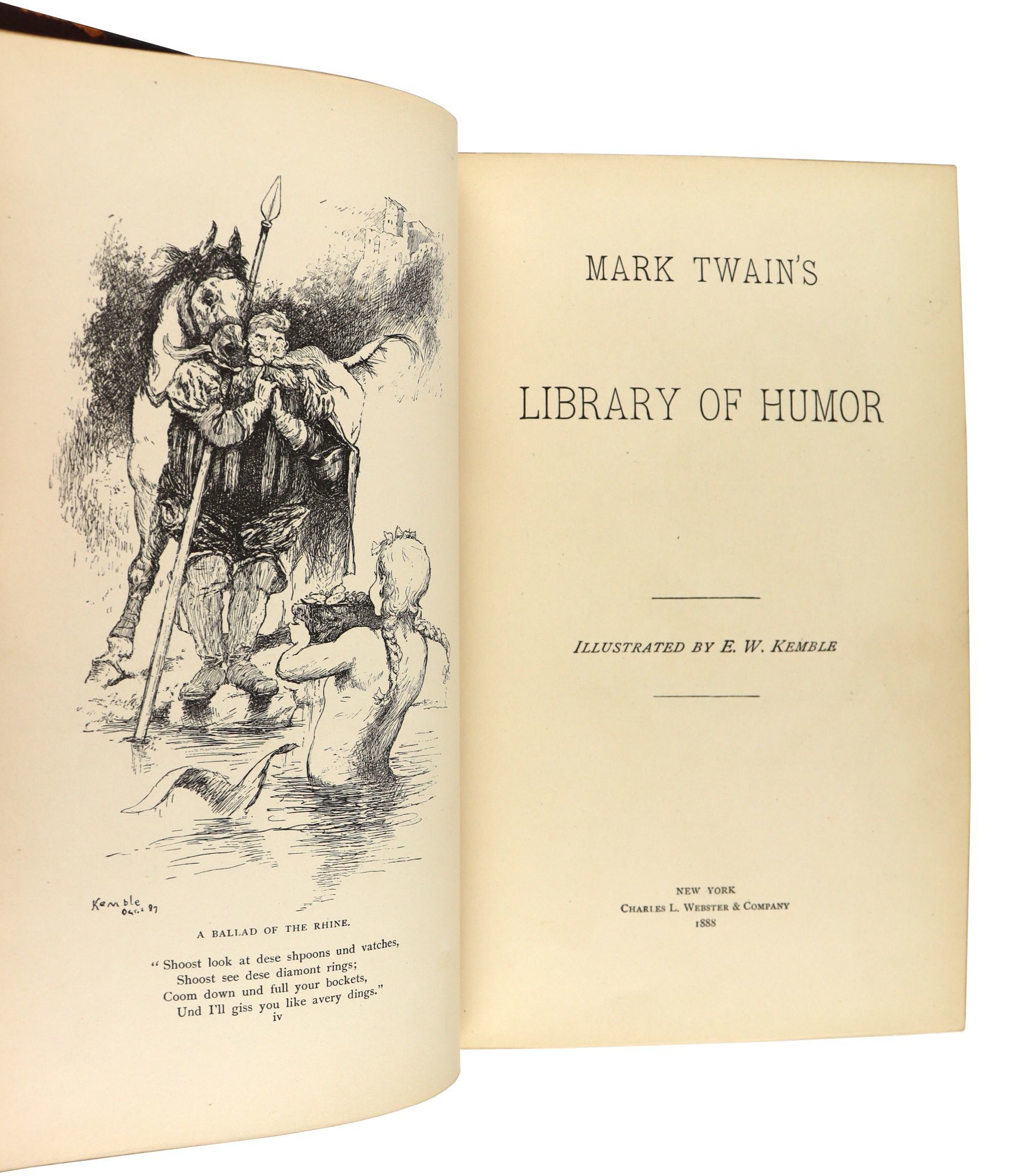 New York: Charles L. Webster & Company, 1888. Very Good. New York: Charles L. Webster & Company, 1888. Octavo (23.7 cm), xxiv, 707pp. First Edition, second state with alphabetized index of titles and “Warm Hair'' uncredited. Boards half bound in contemporary leather and maroon cloth with gilt stamping to the leather edges and spine. Marbled endsheets and page edges. All illustrations listed, including the frontis, are present. Board corners and spine margins bumped. Leather rubbed soft at all corners and joints as well as the raised bands on the spine. A bit of red rot from untreated leather. Scratches and discoloration all over. Loss of leather at the head of the spine and some at the board corners and hinges. Both front and back boards show some cracking at the top of the spine joint. Page edges have a few scratches. Minor starting at the front endsheet gutter. Binding slightly cocked but remains firm. Protective Association of Publishers & Booksellers stamp on the bottom of the back free endsheet. Pages 644 and 645 toned at the top margin from a triangle of laid-in newsprint. “222” in pencil on page xix. Some scattered foxing throughout but all other pages are relatively clean.