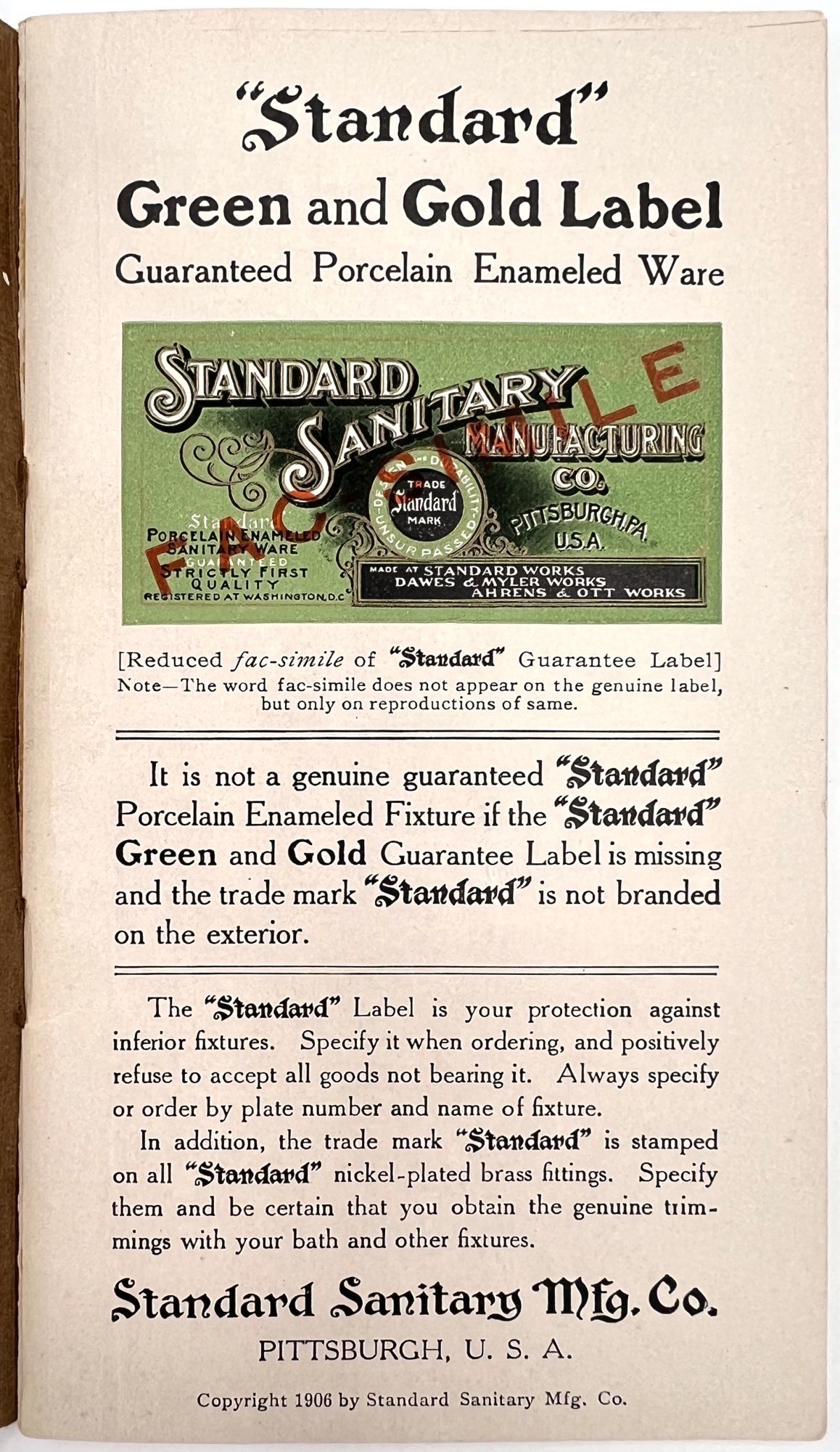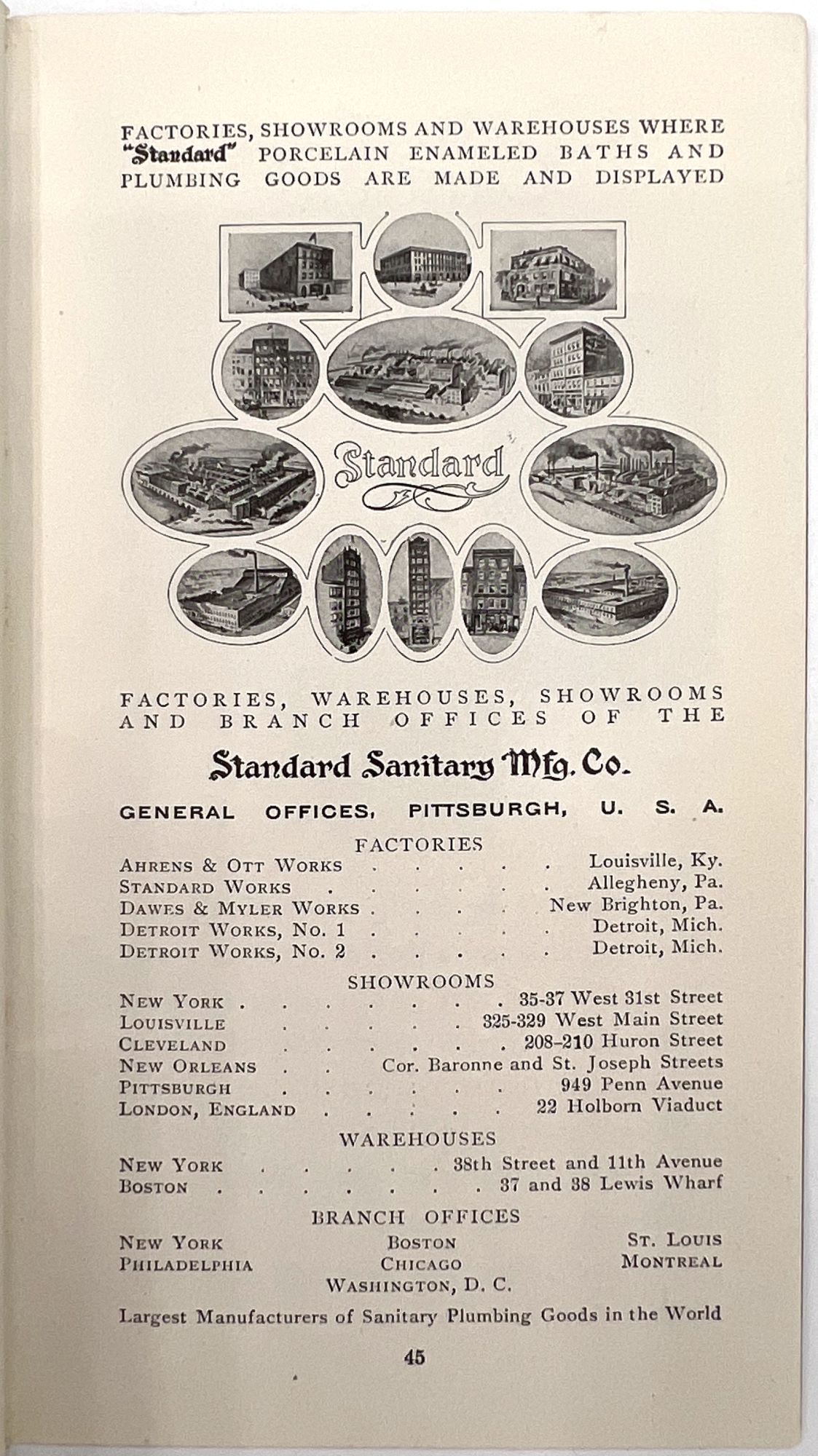 - Pittsburgh, Pennsylvania: Standard Sanitary Mfg. Co, 1906