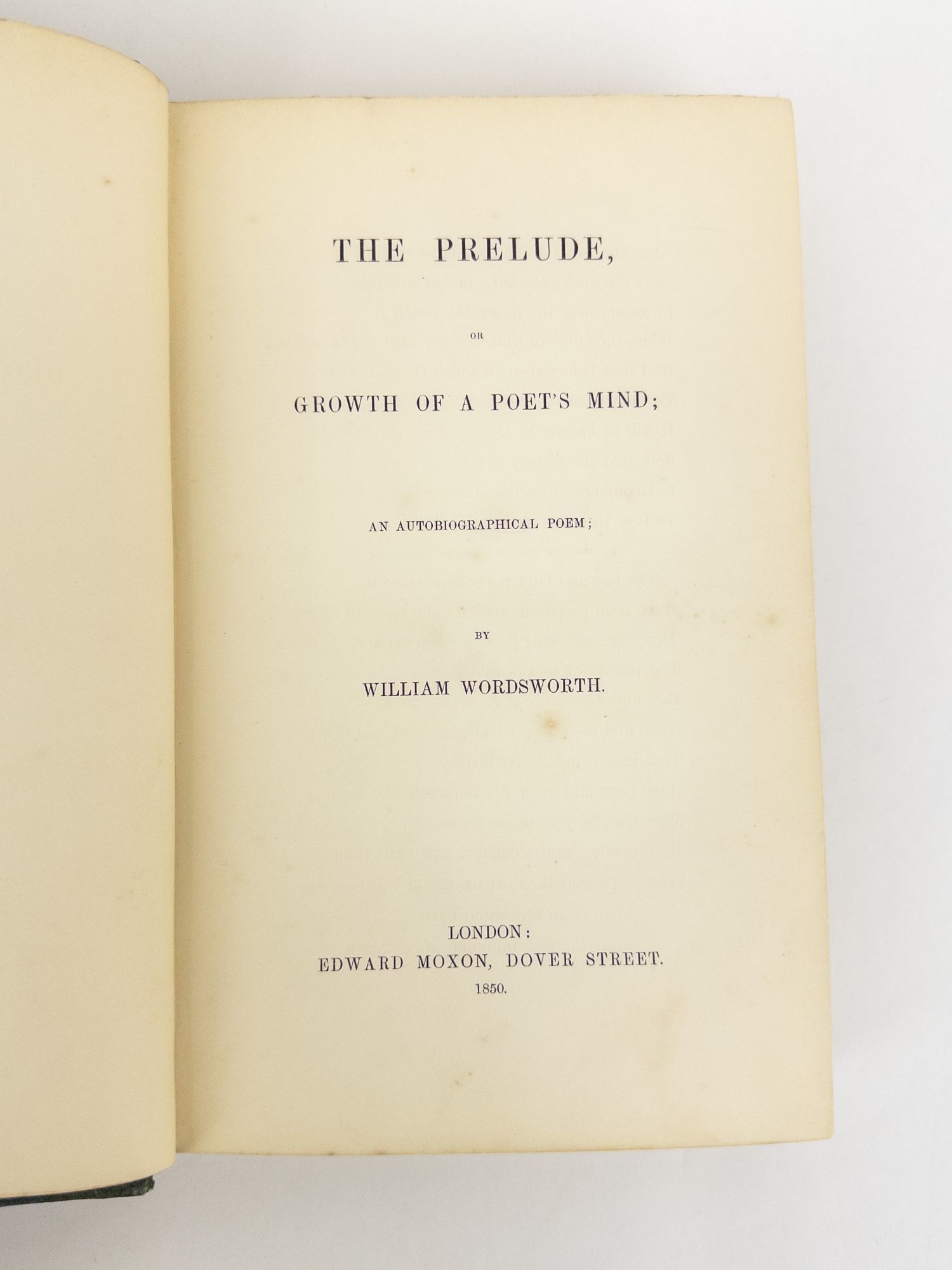 London: Edward Moxon, 1850. First Edition. Hardcover. Octavo, 8, x, 374 pages. In Very Good minus condition. Re-backed in dark green cloth with original spine preserved. Spine faded to brown and bearing mildly worn gilt lettering. Mild wear to head and tail of spine and edges of boards. Rubbing and bumping to corners of boards. Mild scuffing to spine and boards. Spine cocked. Tearing and penciling to page 1. Light age toning with foxing and scattered penciling throughout textblock. Bound with advertisements dated November, 1849. Shelved in Case 1. 1382543. Shelved Dupont Bookstore.
