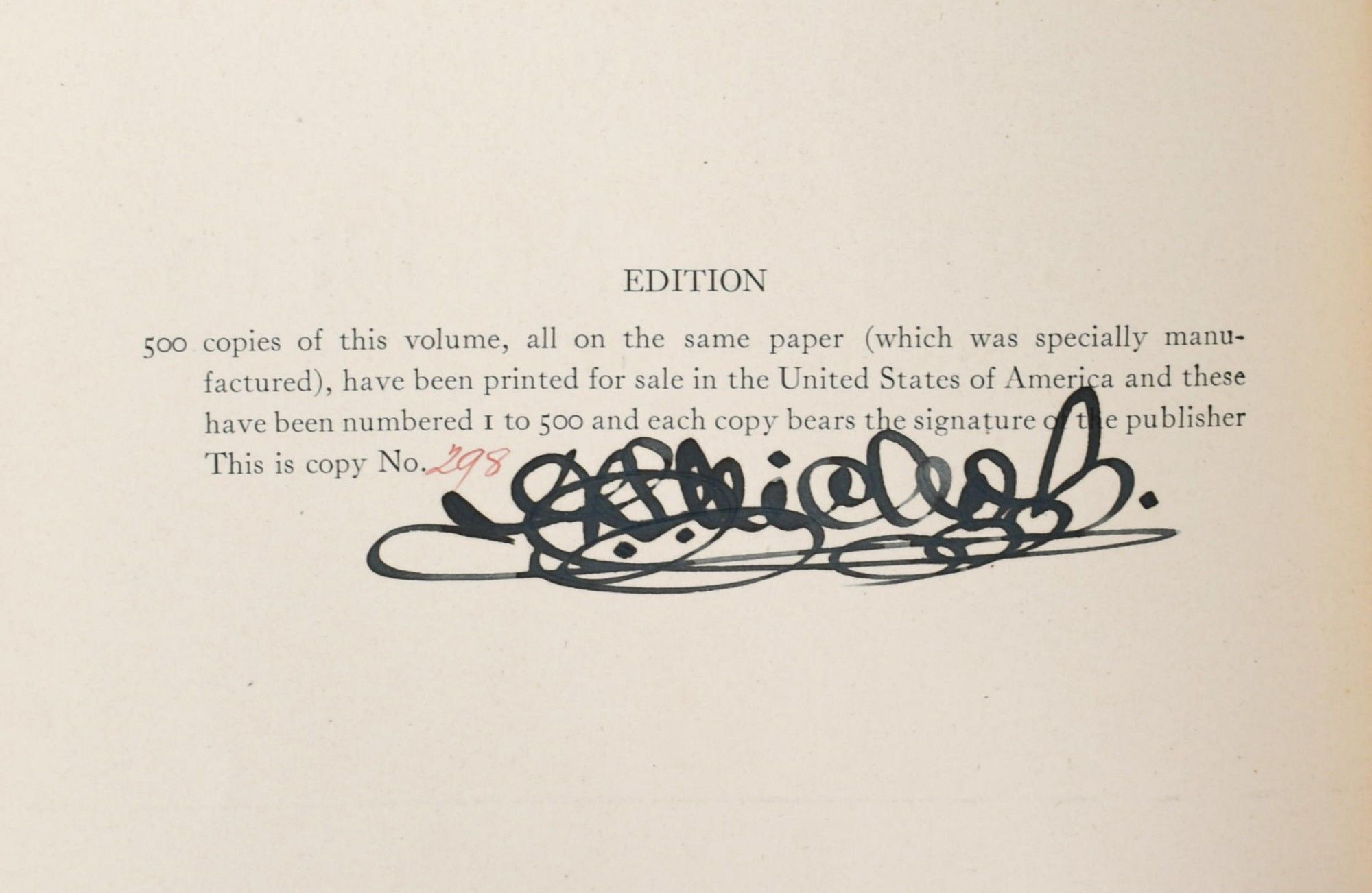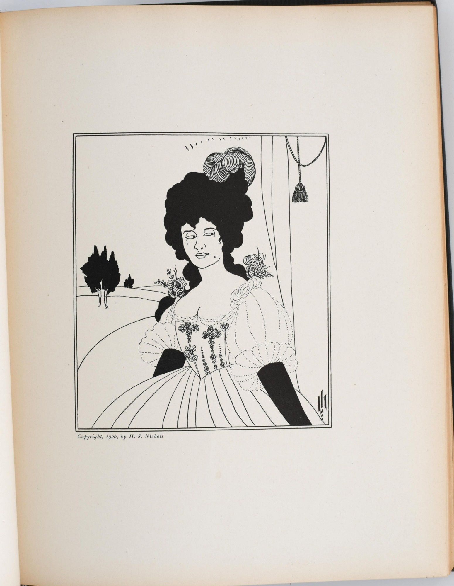New York: H. S. Nichols, 1920. Limited Edition. Hard Cover. Very Good binding. Quarto; in publisher's black cloth binding, with decorative floral motif in the style of Aubrey Beardsley; beveled edges; the front board is reasonably bright, though the spine is dull; the edition is limited to 500 copies numbered 1 to 500, of which this is copy no. 298; with the publisher's elaborate signature; front hinge cracked but holding well; faint stain to the leading edge.~~These printed drawings are almost certainly not by Beardsley but are by the publisher and one of his associates. Very Good binding.