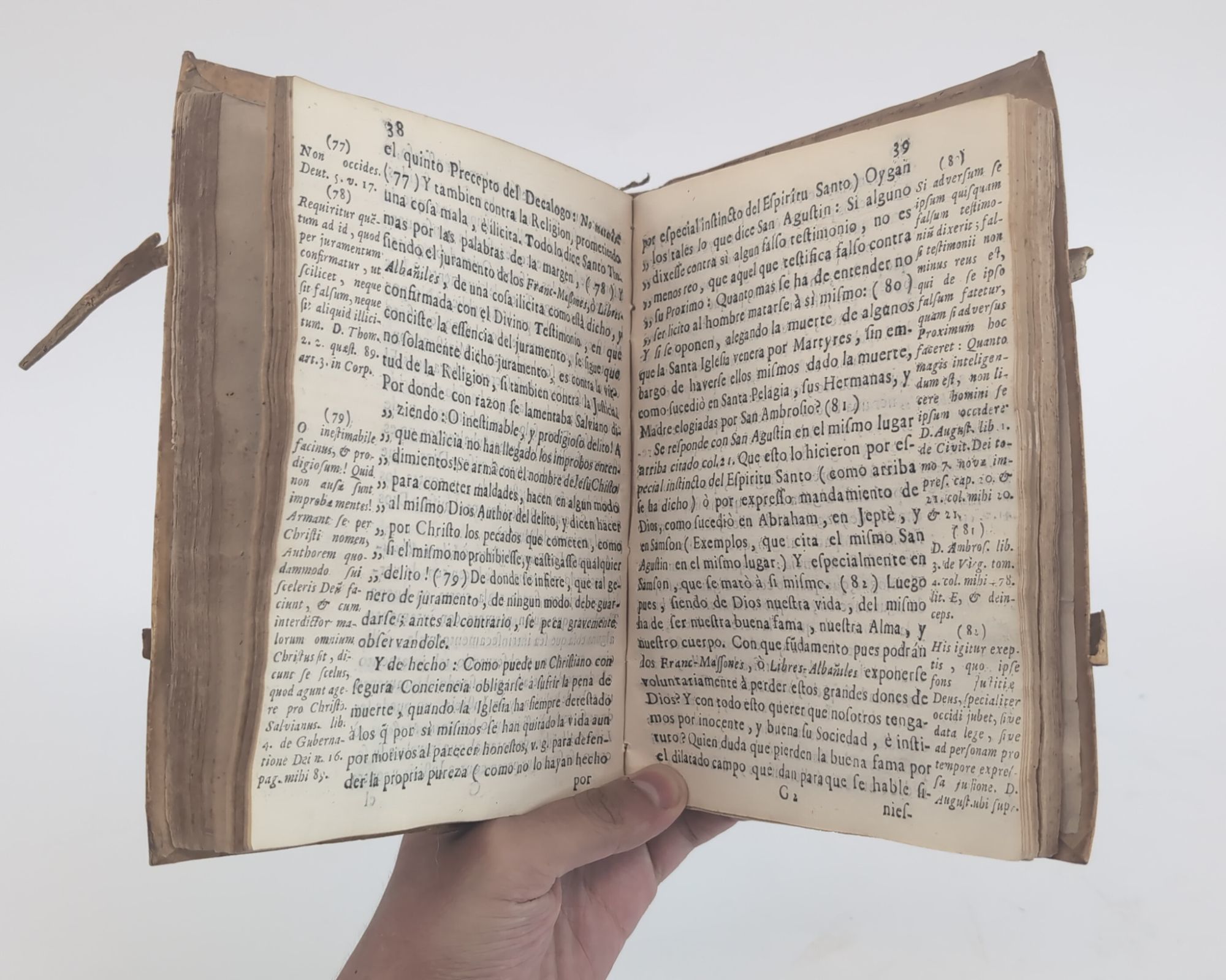 Pi Y Vila-Rasa, Joseph. CARTA PASTORAL, QUE ESCRIBIO EL ILUSTRISSIMO, Y RMO. SEÑOR DON FR. PEDRO MARIA GIUSTINIANIOBISPO DE VENTIMIGLIA EN EL ESTADO DE GENOVA, EN ORDEN A LA SOCIEDAD DE LOS FRANC-MASSONES. Barcelona: Pedro Escuder, [n.d.]. [10], 52 pages. Open tears to gutter of final leaf. Text block trimmed quite closely, resulting in some loss to printed notes in margins.
