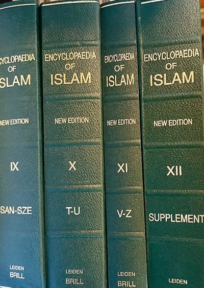 Leiden, Netherlands: E.J. Brill, 2004. Cloth. Near Fine. The "new edition" of Brill's sweeping Encyclopaedia of Islam, complete in 12 volumes (plus the 3 Index supplements) and spanning 1979 thriugh 2004. All volumes clean and easily VG+ to Near Fine. Vols. I-IV bound in their dark-green boards, Vols. V-XII consisting of loose fascicules (as issued) within each chemise. Plus the 3 wrappered Indexes ("Index of Proper Names", "Index of Subjects" and "Index of Glossary and Terms"). Exhaustive and very impressive.