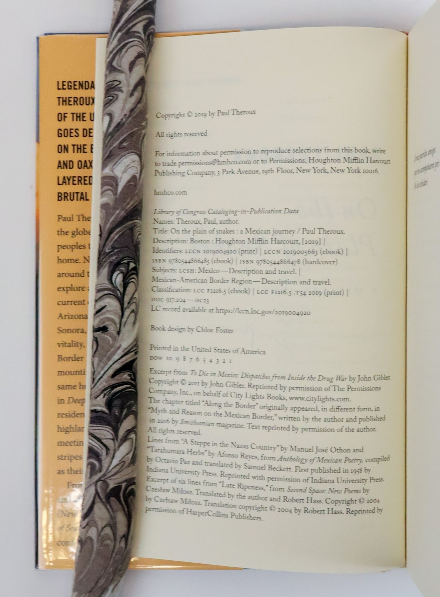 Boston, MA: Houghton Mifflin Harcourt, 2019. First Edition, First Printing. Hardcover. Octavo, 436 pages. In Near Fine condition with a Near Fine condition dust jacket. Dark red spine with light orange and white lettering. Dust jacket is wrapped in a mylar covering, has a numbered sticker on the front mylar cover, and a pricing sticker on the rear cover over the ISBN code. Textblock has an inactive security tag on the rear end-page. Signed flat by Paul Theroux on title page. Shelved in hallway. 1382693. Special Collections.