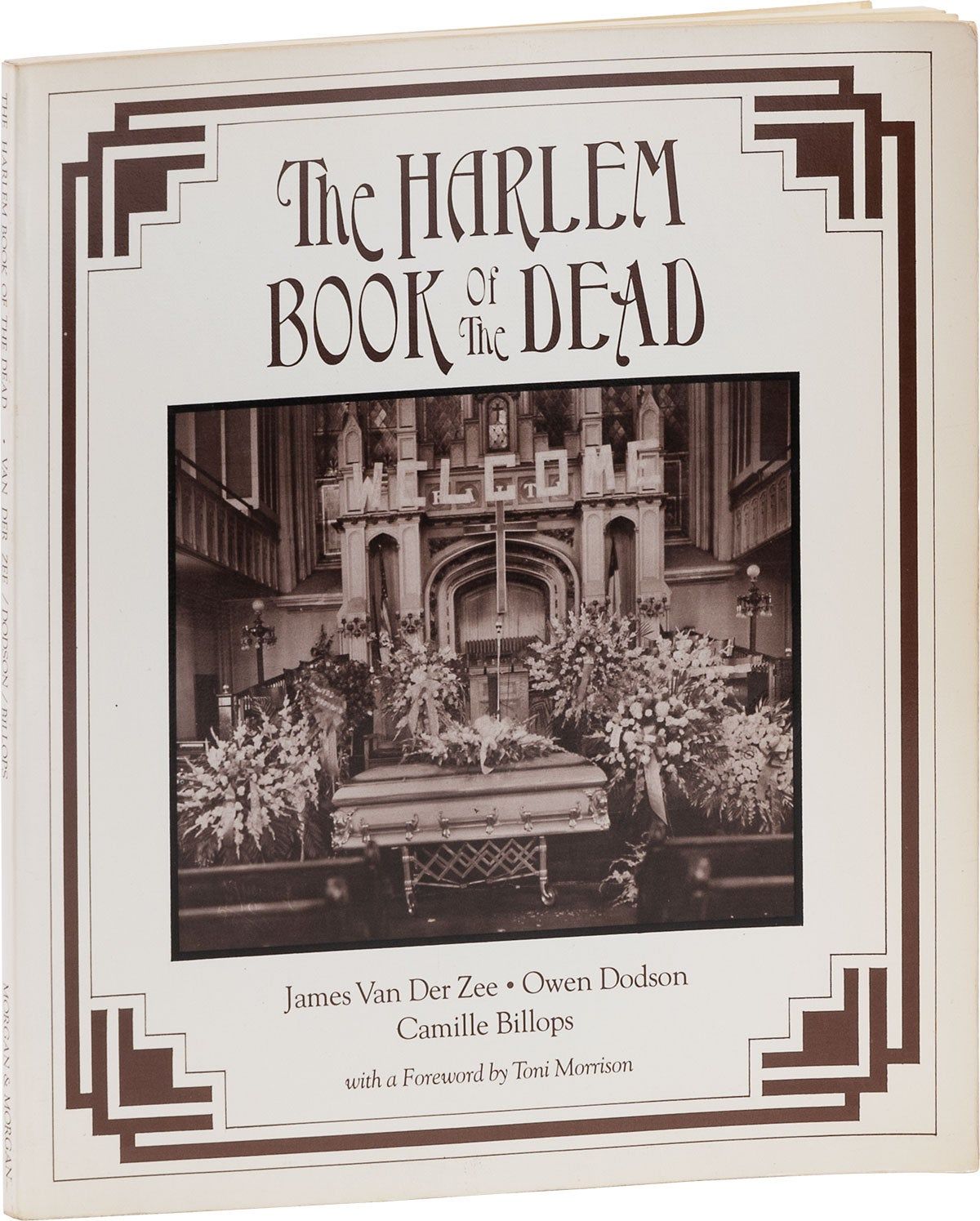 Dobbs Ferry, NY: Morgan & Morgan, 1978. First Edition. First Printing, wrappered issue. Quarto (26.5cm); original pictorial card wrappers; [x],85,[1]pp; illus. Signed and inscribed by the three principal contributors to this volume: by Owen Dodson, in a contemporary hand, on the verso of the front wrapper ("To the Bartoks / Best always, Owen Dodson / Nov.12, 1978"), and by Camille Billops ("To Jennifer / Thank you for helping out / Love / Camille Billops") and James Van Der Zee on the half-title ("James Van Der Zee / Lenox, Mass / N.Y.C."). Trivial wear to extremities, with a subtle, upward curl starting at right edge of front wrapper; contents fresh; Near Fine. Collected post-mortem photographs taken by James Van Der Zee in Harlem morgues and funerals from approx. 1916 to 1969, many with lavish overlays of religious subjects. Most of the subjects are African-American, though he was hired to photograph a few white funerals. Includes many young children, some hit by cars, but many of whom died of pneumonia living in unheated apartments. A number, though not all, are accompanied with quite detached explanations by the photographer (pp.82-85), the most striking of which describes the death of a young female subject: "She was the one I think was shot by her sweetheart at a party with a noiseless gun. She complained of being sick at the party and friends said, 'Well, why don't you lay down?' and they taken [sic] her in the room and laid her down. After they undressed her and loosened her clothes, they saw the blood on her dress. They asked her about it and she said, 'I'll tell you tomorrow, yes, I'll tell you tomorrow.' She was just trying to give him a chance to get away" (p. 84). Text accompanying the photographs include untitled poems by Harlem Renaissance writer Owen Dodson and an interview with the photographer. With a brief foreword by the Nobel Prize laureate Toni Morrison. BLOCKSON 847.