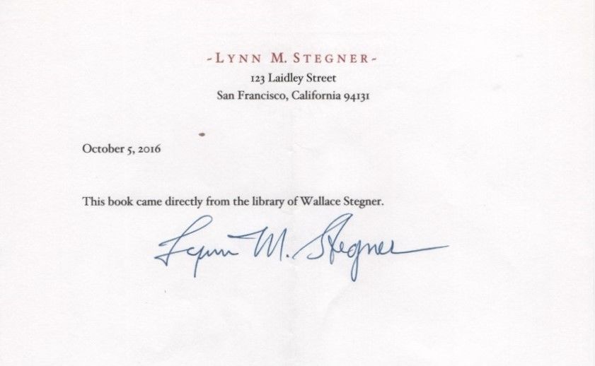 Signed by Wendell Berry, with the date "4/25/60," on the half title. This copy is from the personal library of Wallace Stegner. With a laid in note written by Lynn Stegner, Wallace Stegner's daughter in law, stating that this book is from Wallace Stegner's library.