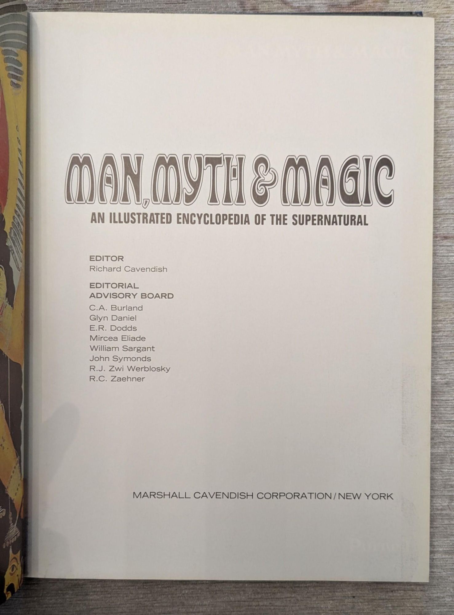 Originally published by BPC Publishing LTD, Man, Myth & Magic was serialized as a limited British weekly magazine intended to be collected as a whole. Publication commenced in 1970, and continued for 112 issues, including more than 1,000 articles with some 5,000 illustrations, many of them in full colour. In 1970 BPC Publishing Ltd put out a very popular hardcover set condensing all 112 magazines into a 24 volume set.