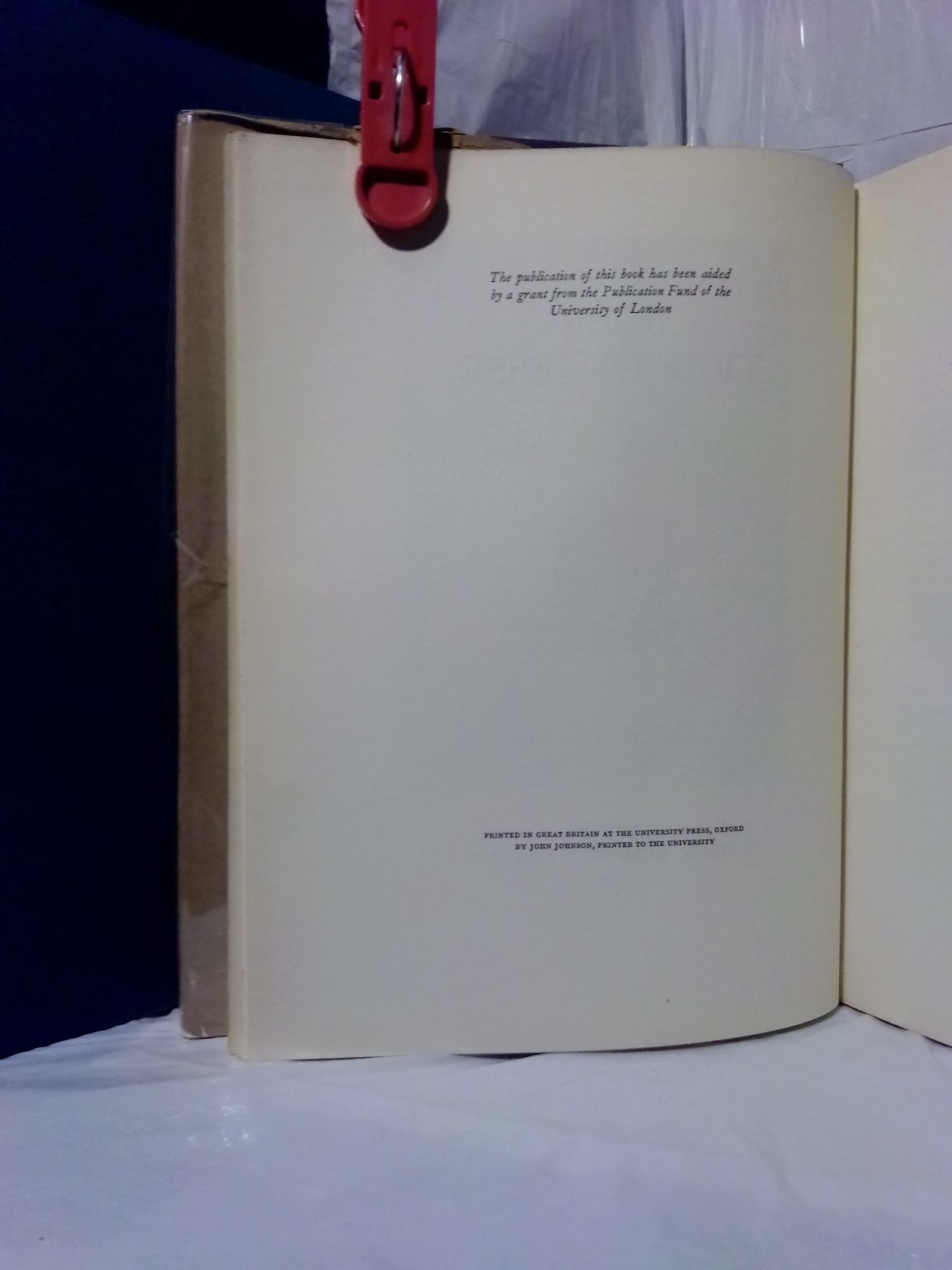 London: Oxford University Press, 1934. First Edition. Hardcover. Quarto, xiv, 197 pages. In Good plus condition with a Fair dust jacket. Spine tan with black lettering. Dust jacket protected with a mylar covering, price clipped front flap. Exterior shows moderate plus wear including several instances of chips edges/joints and some damp staining/soiling. Boards shows slight wear including moderate sunning and light foxing. Text block has age toning/foxing to the edges. Deckled fore edge. Slight offsetting to the end papers. Frontispiece. Profusely illustrated. Extremely scarce in dust jacket. Out of print in the U.S. First Edition.