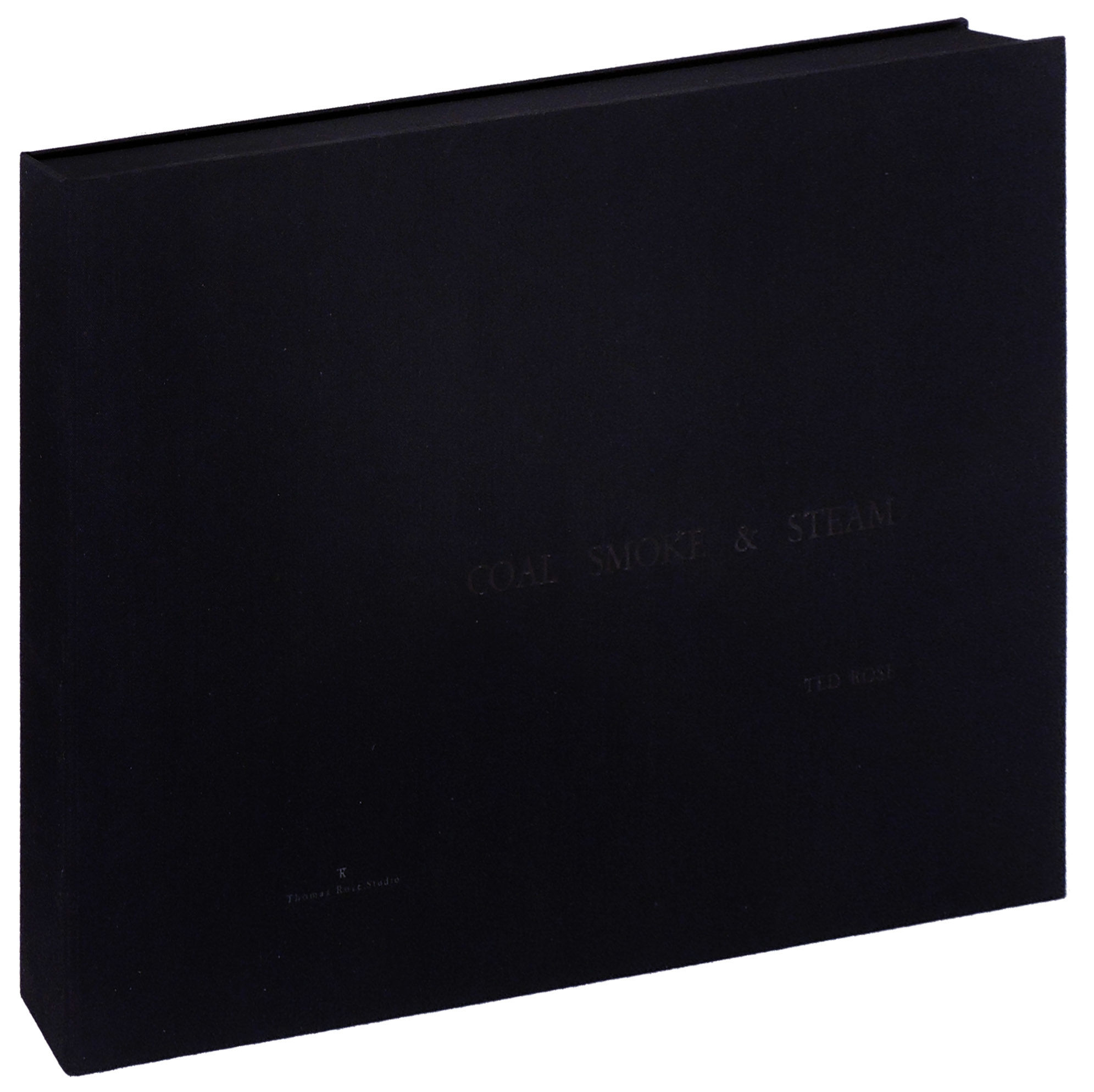 The basic framework [of this production] is the clamshell box, and inside its front cover is an image of coal. The book is also housed in the box that accompanies the unbound photographic images. This is the book of text that includes Thomas's foreword essay on Ted's life, a poem by Steven Albahari, a preface to the photographs with text from Ted's daughter Molly and a piece by Curtis L Carter that considers Ted's photography, acknowledgements, an epilogue, the colophon, and an index of the images. The 21 images are under the book; these are numbered but unbound. The numbering of the images is related to Ted's age (21) at the time when the images were taken on one of his many sojourns to Mexico and into Guatemala; under the photographs is the image of steam. In fine condition. The book is 14.5 x 16.5 x 1.75, inches. It opens horizontally. The cover is black Japanese rayon / cotton, with Japanese black silk inside. The is in Black silk and stamped with the title only. The book weighs approx. 11 pounds. ARTB/070324.