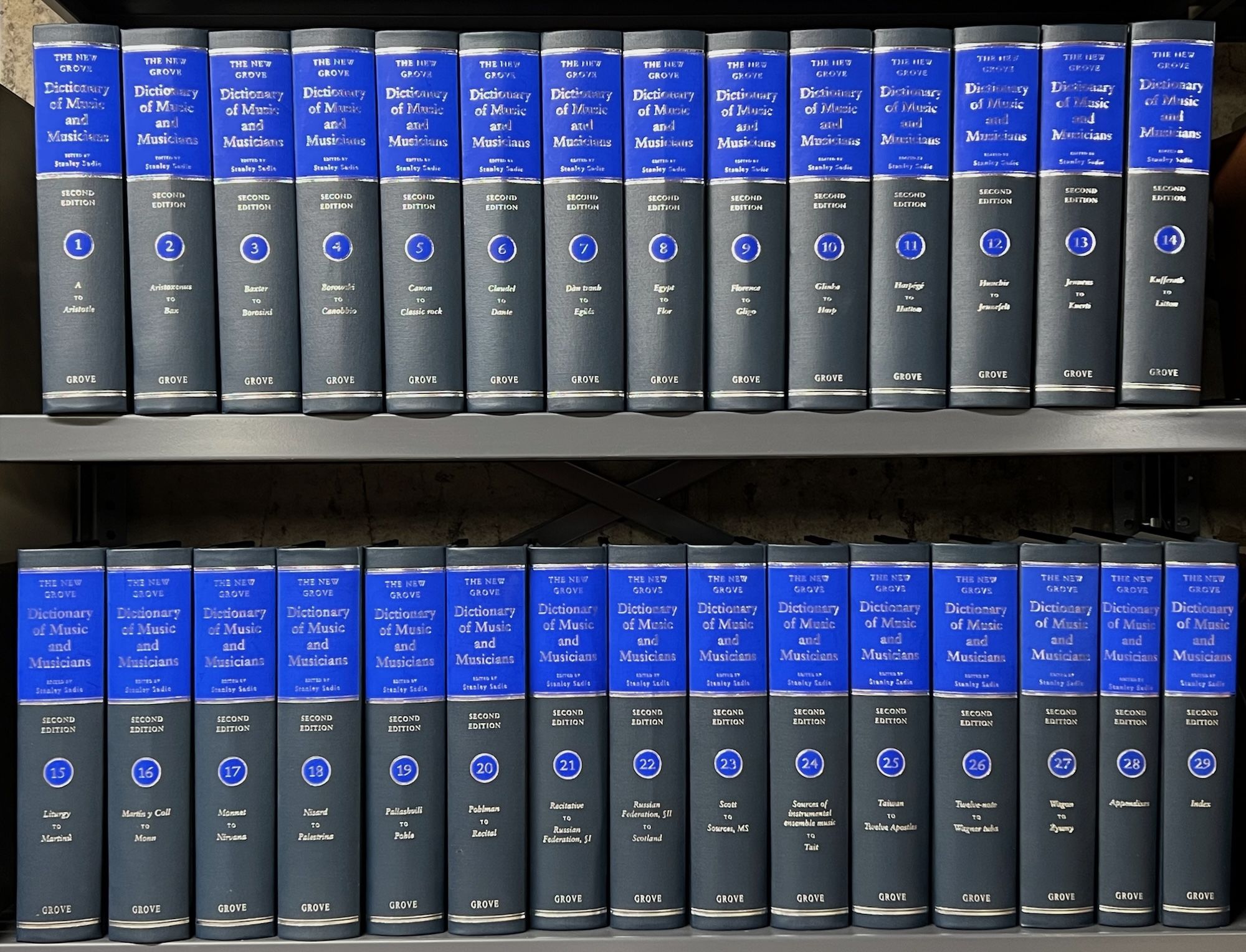 The second edition of The New Grove Dictionary of Music and Musicians, to be published by Grove's Dictionaries on Jan. 30, must therefore stand in its sheer bulk as a monument to the indomitable human spirit. The facts and figures are astounding: 29,500 articles, 6,000 contributors, 25 million words. For the print version, 29 volumes, 119 pounds, 5,000 illustrations, a purchase price of $4,850. And a complete version online, to be updated regularly.