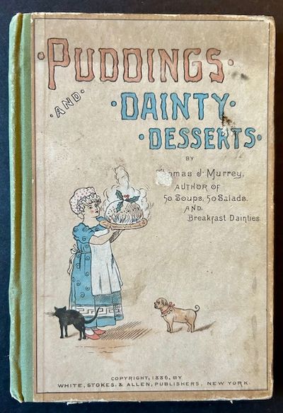 New York: White, Stokes & Allen, 1886. Pictorial boards. Very Good. Precious 1884 American recipe book on puddings and dainty desserts. Tight and VG in its pictorial boards, with offsetting along the front panel's top-edge and, otherwise, very mild soiling to the panels. Light staining along the inner hinges as well. 16mo, 53 pgs. followed by publisher's ad at the rear.