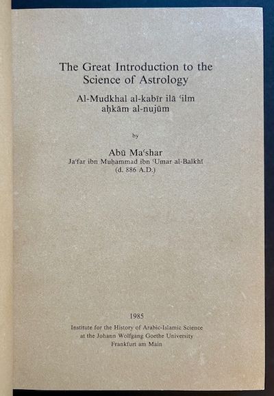 Frankfurt, Germany: Institute for the History of Arabic-Islamic Sciences, 1985. Boards. Fine. A sharp, all-but-pristine copy of this 1985 facsimile reprint of the manuscript written in 886 A.D. Clean and Fine in its wine-red boards. Octavo, part of the "Institute for the History of Arabic-Islamic Sciences" series (Series C--Volume 21), published out of Frankfurt.
