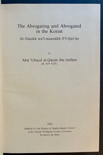 - Frankfurt, Germany: Institute for the History of Arabic-Islamic Sciences, 1985