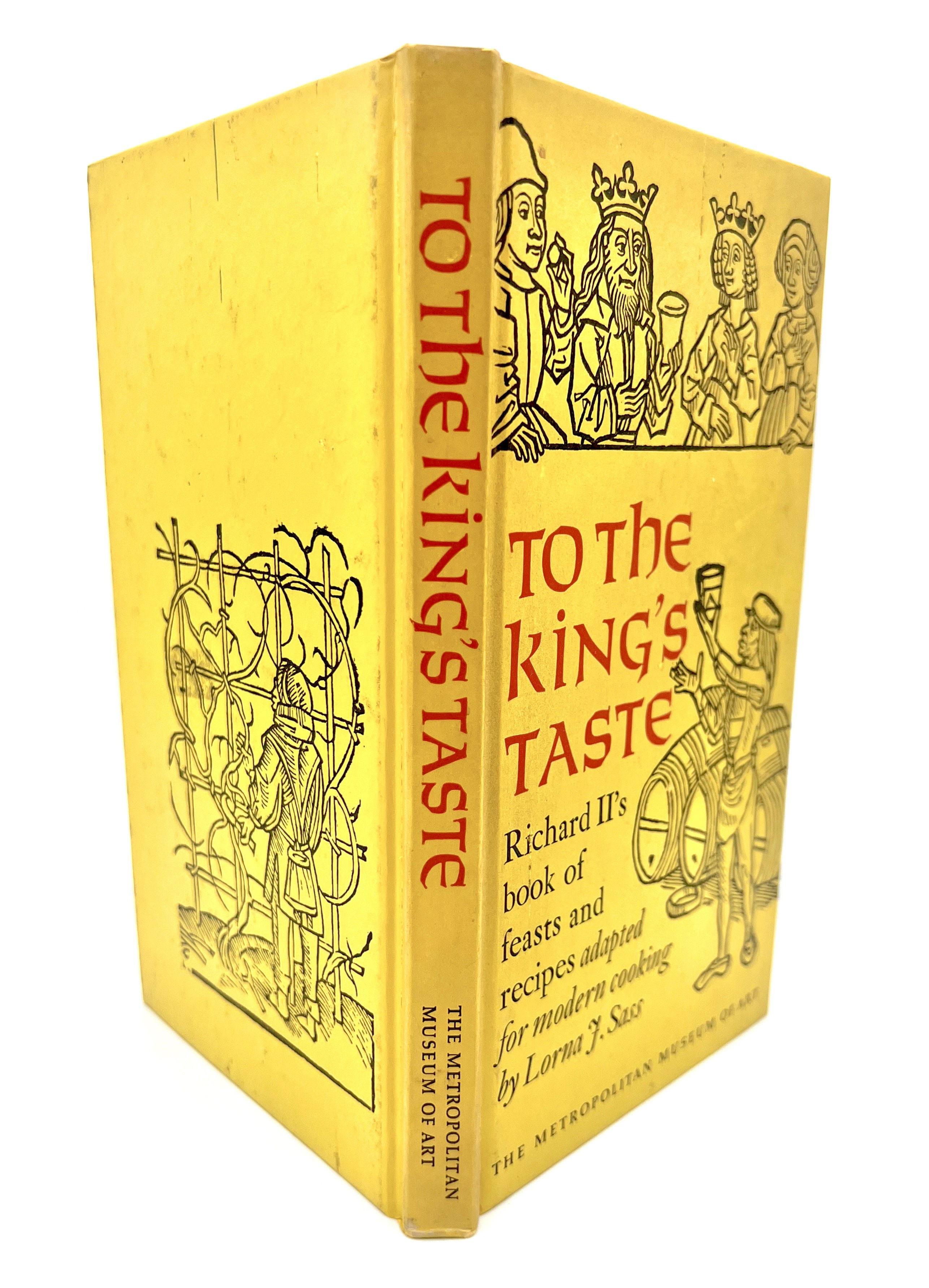 New York: The Metropolitan Museum of Art, 1975. Hardcover. Yellow illustrated boards. Near fine. 144 pages. 22 x 12.5 cm. "All but a few of the recipes in this book are from the Forme of Cury (Manner of Cook-manuscript recipes in Middle English). Written about 1390 at the request of King Richard II, 'the best and royalist viander of all Christian kings.' Many of the hundred and ninety-six recipes in the Forme of Cury reveal the lust for grandeur and exoticism characteristic of Richard's court." Designed by Peter Oldenburg, Composed and printed by The Stinehour Press. Illustrated throughout. Interior crisp and clean, boards very lightly soiled.