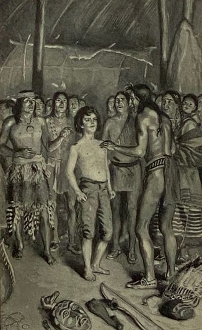 New York: E.P. Dutton & Company, 1911. Hard Cover. Very Good/No Jacket. 0x0x0. Harker, G.A. Minor wear to corners. 1911 Hard Cover. vii, 281 pp. Frontispiece and plates by G.A. Harker. In the year 1774, fifteen-year-old Henry Cochrane is captured by a party of Seneca Indians near his home in central New York State. Adopted by the young Seneca, Hiokoto the Hawk, Henry grows to love the Indian ways and becomes Dundiswa - the White Seneca. When Henry is captured by an enemy tribe, he must rely on all the skills he has learned from the Indians, as well as his own courage and determination, as he attempts to escape from them and rescue fellow captive, Constance Leonard. Meanwhile, the Revolutionary War has begun and conflict escalates between the Indians, who have sided with the British, and the settlers. Eventually Henry must choose between his love for the Senecas and his loyalty to his own people.