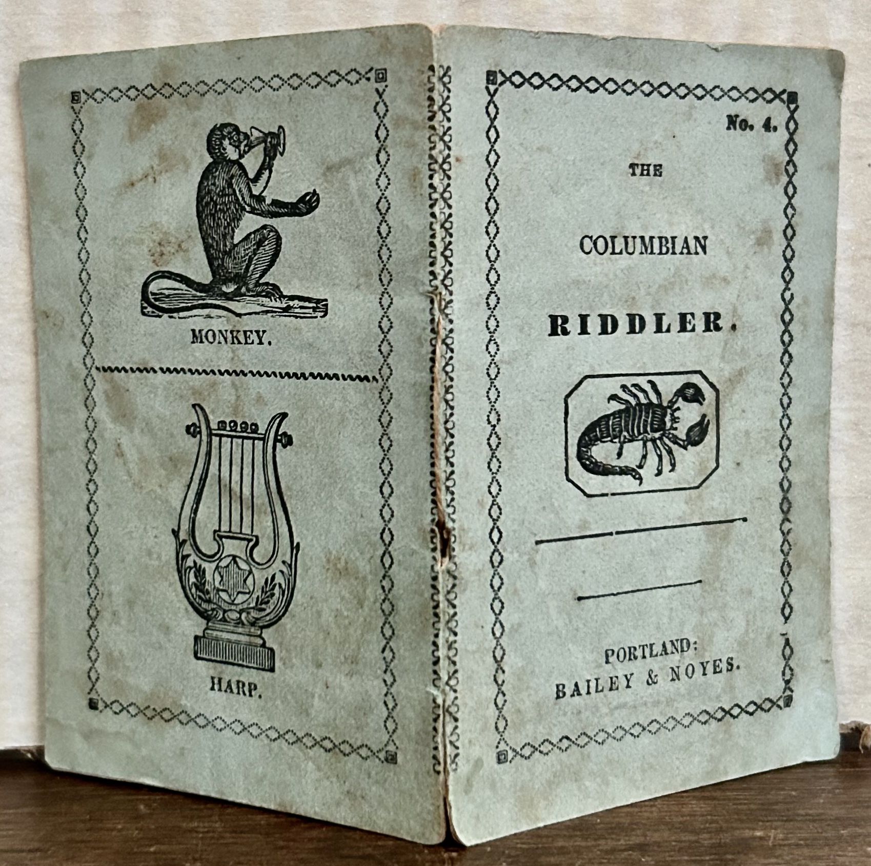 Portland: Bailey & Noyes, 1800. First printing. Pamphlet. Light green illustrated paper wrappers. Very good. 16 pages. 10 x 6.5 cm. Illustrated. Two pages of Conundrums -- "What occupation has the sun." Answer. "A Tanner." OCLC: 612682507. Reasonably clean copy.