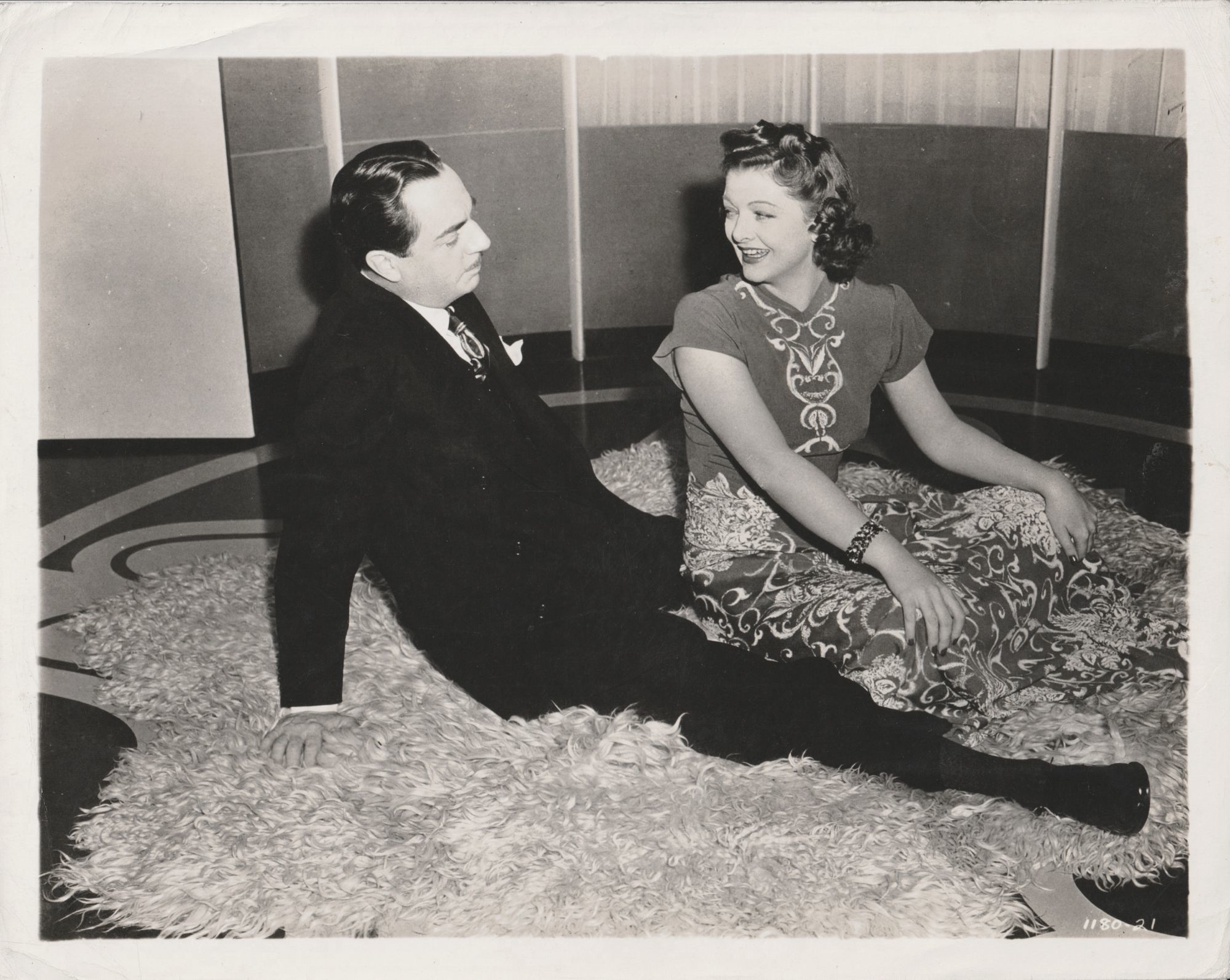 N.p.: N.p., 1941. Vintage reference photograph of William Powell and Myrna Loy sitting together on the set of the 1941 film. Provenance stamp on the verso.