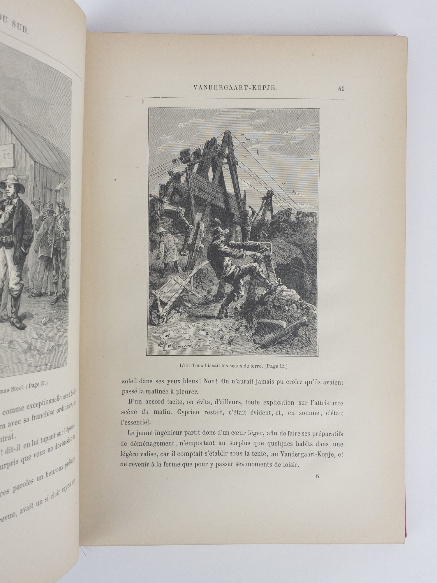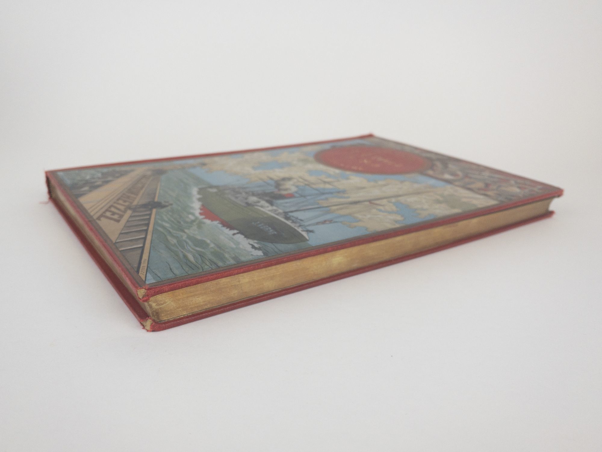 Paris: Bibliotheque d'Education et de Recreation / J. Hetzel, [1892-1905]. Hardcover. Large Octavo, 242 pages. In Very Good condition. Spine red with gilt lettering, sunfaded with slight tearing, tearing repaired with archival glue. Mild shelfwear and soiling. Multi-colored cartonnage polychrome boards bright. Textblock edges in gilt. Slight age-toning to pages, mild foxing throughout. Text in French. Shelved in Room A Oversized. This edition (Cartonnage au steamer - Rouge) was published between 1892 and 1905.