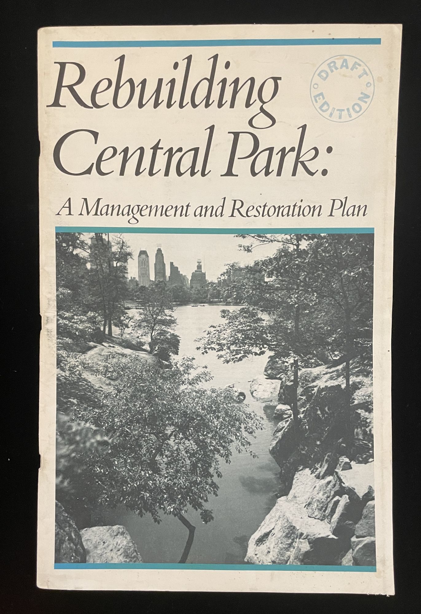 NY: Central Park Conservancy, 1985. 1st Edition. Soft cover. Near Fine. The uncommon 1985 DRAFT EDITION published by the Central Park Conservancy itself that preceded the 1987 final edition published by MIT. Tall folio, pictorial paper covers, stapled spine, 93 pages, profusely illustrated with b&w historic and contemporary (showing the decline of the park) and original and new, restorative plans. A landmark study in both landscape and urban design and planniing. Covers a tad soiled, internals fine.