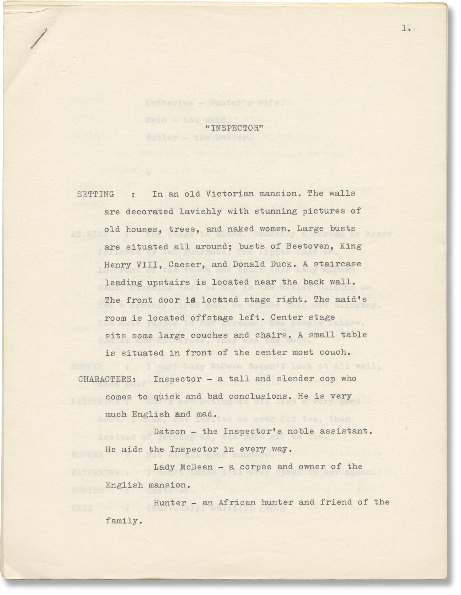 N.p.: N.p., 1970. Draft typescript for an unproduced television episode. With brief editorial annotations in manuscript pencil and ink throughout.